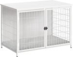 Hondenkrat meubels met kussen, houten hondenkennel met dubbele deuren, zware hondenkooi voor kleine/middelgrote/grote honden, overliggende hondenhuis eindtafel, 39,4 “L, White DCBW10701