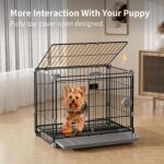 【Stevig en duurzaam】】】: Onze 24-inch zwarte kleine hondenkrat is gemaakt van hoogwaardig metaalmateriaal, stevig en duurzaam, niet gemakkelijk om onbreekbare gespen te vervormen, voorkomen dat puppy’s effectief ontsnappen. Geschikt voor huisdieren tot 25 pond