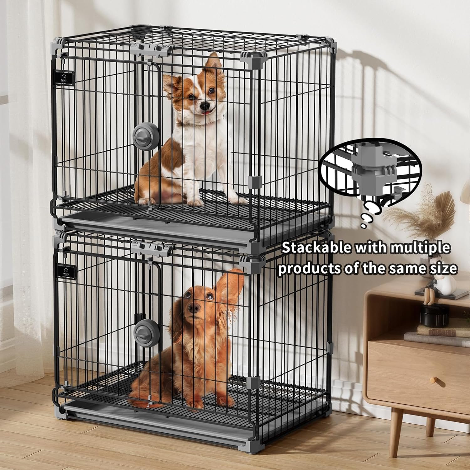 【Compact en stijlvol】】: Onze binnenhondenkennel meet 24 centimeter lang * 16,5 inch breed * 19,3 inch hoog, wat een perfecte maat is voor uw mooie puppy’s
