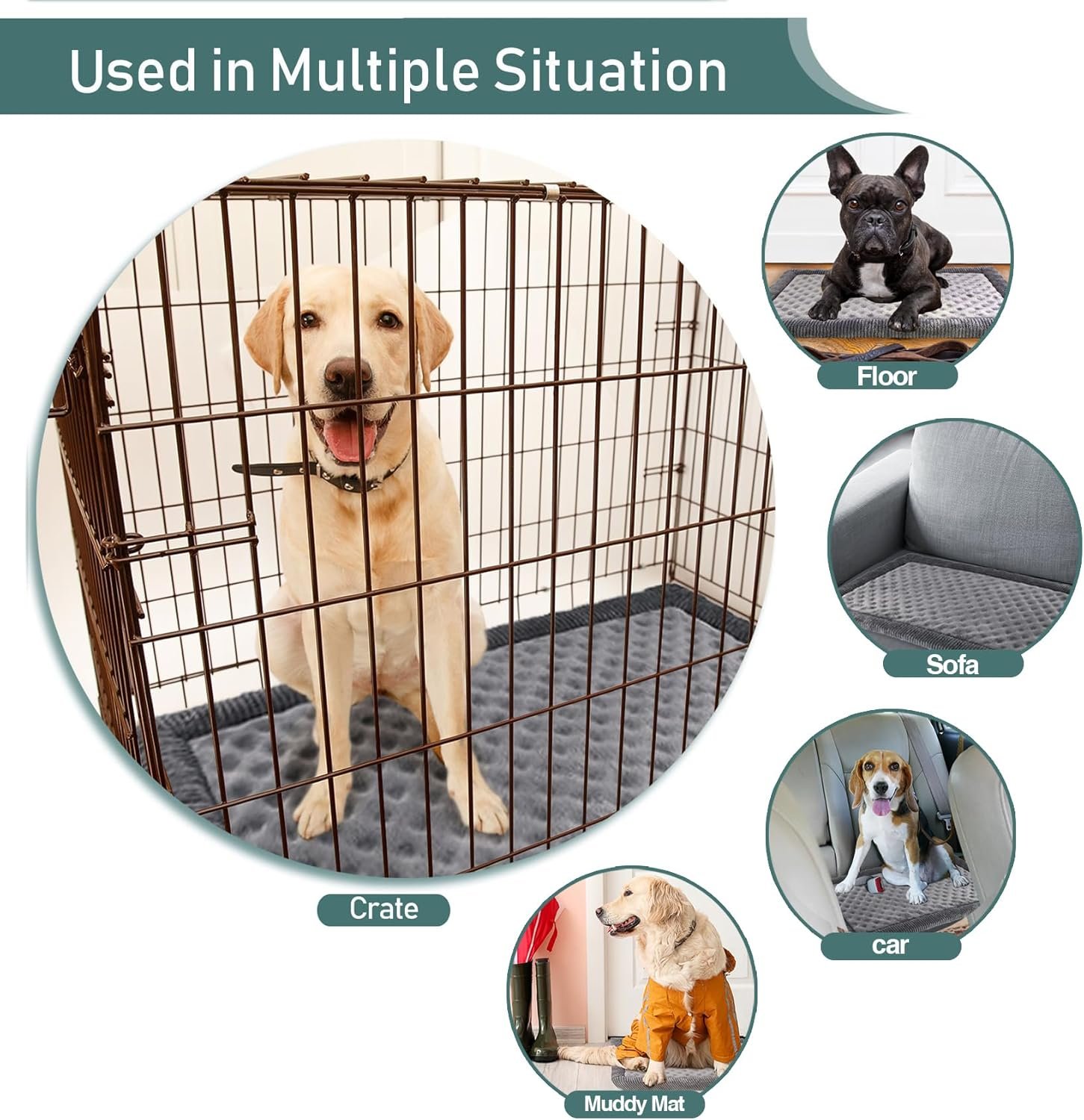 Non-Skid: de rubberen steun houdt het hondenkratkussen op zijn plaats, waardoor de veiligheid van uw hond zorgt voor het staan en uitstappen. Lichtgewicht en draagbaar, het kan gemakkelijk worden verplaatst naar binnenvloeren, kratten, kennels, banken of autostoelen.