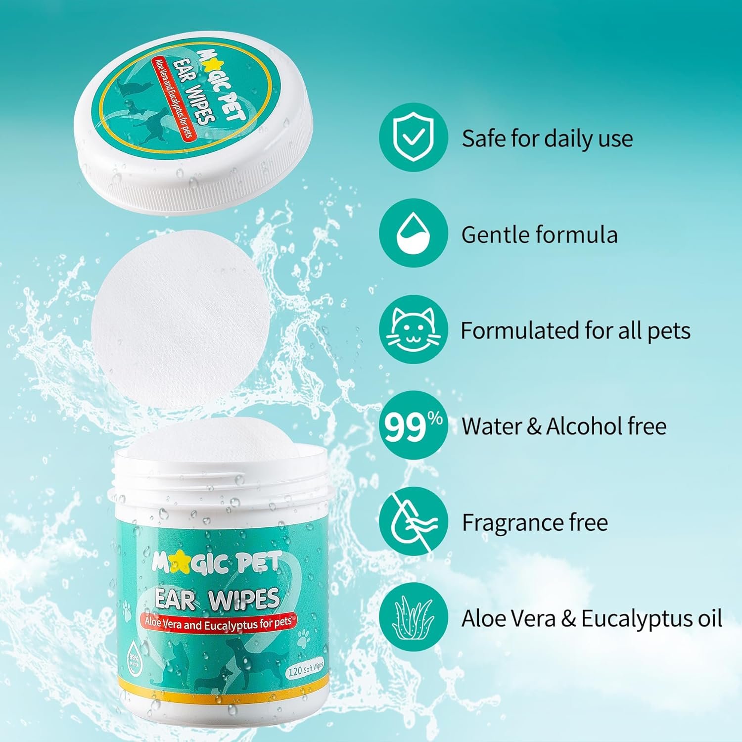 Hondenoorschroevende doekjes-120 verzorgingsdoekjes met aloë vera & eucalyptus-zachte 99% waterdier doekjes voor pet voor geur en wasverwijdering-otic honden en katten oren reinigingsvrije pet verzorging voorraden benodigdheden