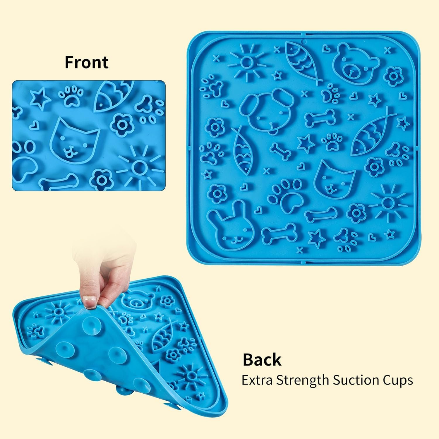 Niet-slip en dik ontwerp: om te voorkomen dat het speelgoed wordt omgeslagen of rondglijdt tijdens het spel, heeft ons product een verdikt ontwerp met 5 niet-slip-pads aan de onderkant. Het likkussen is uitgerust met 25 zuigbekers aan de onderkant, waardoor stabiliteit en veiligheid in elk scenario wordt gewaarborgd.