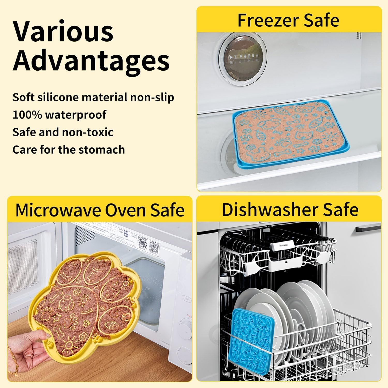 Onze hondenlikmat is speciaal ontworpen voor het voeden van een verscheidenheid aan voedingsmiddelen zoals yoghurt, pindakaas en volledig natuurlijke verspreidbare lekkernijen. Het vertraagt ​​het voedingsproces aanzienlijk terwijl het de pleziertijd van uw huisdier verlengt. Het zorgvuldig ontworpen gestructureerde oppervlak biedt niet alleen een stimulerende uitdaging, maar moedigt ook een plezierige likactie aan. Deze actie genereert speeksel, wat helpt bij het beschermen van de tanden en tandvlees van uw huisdier.
