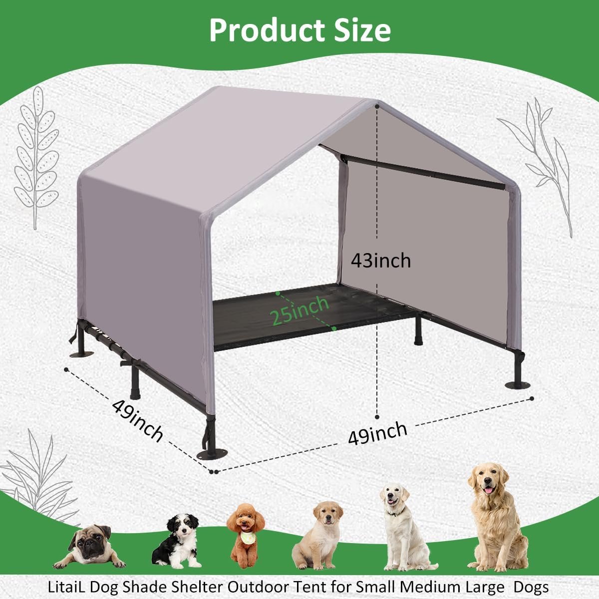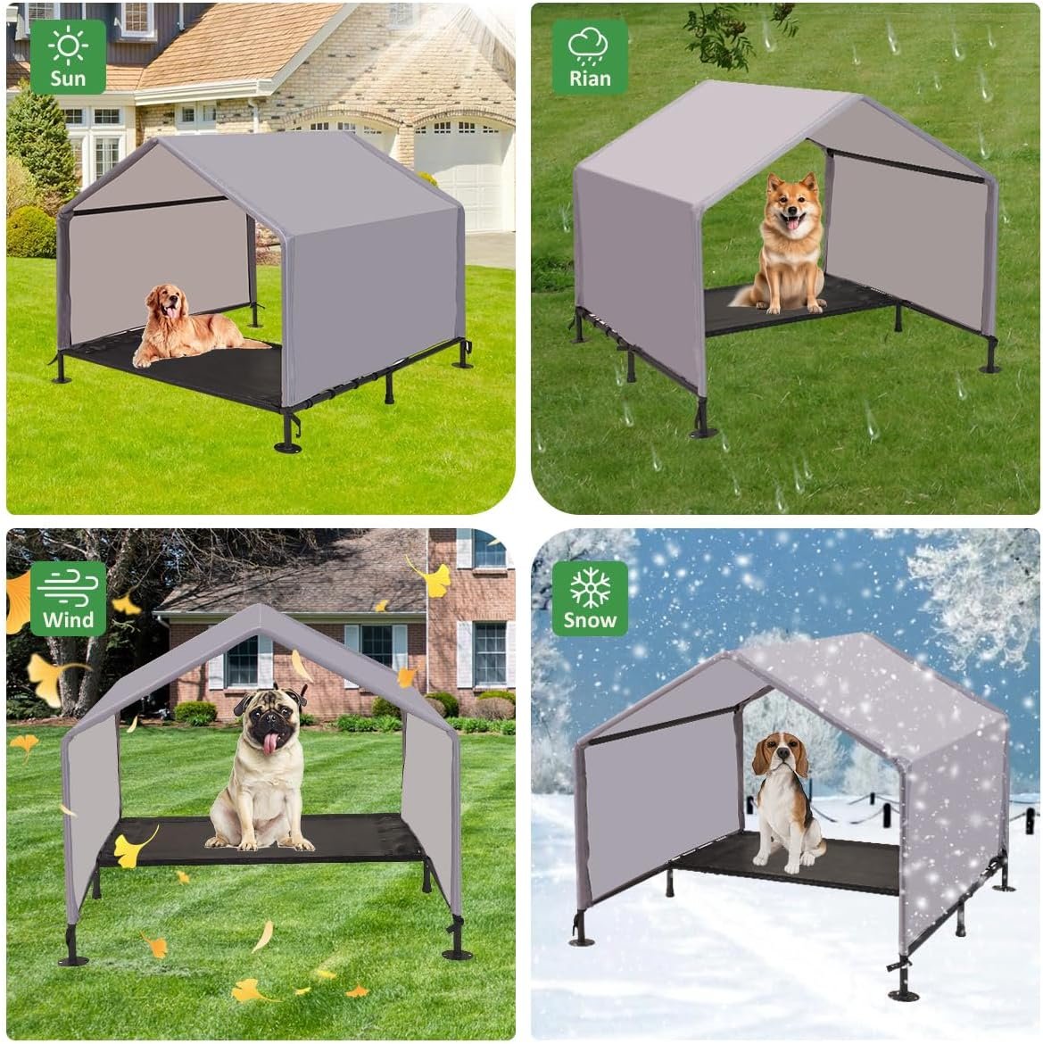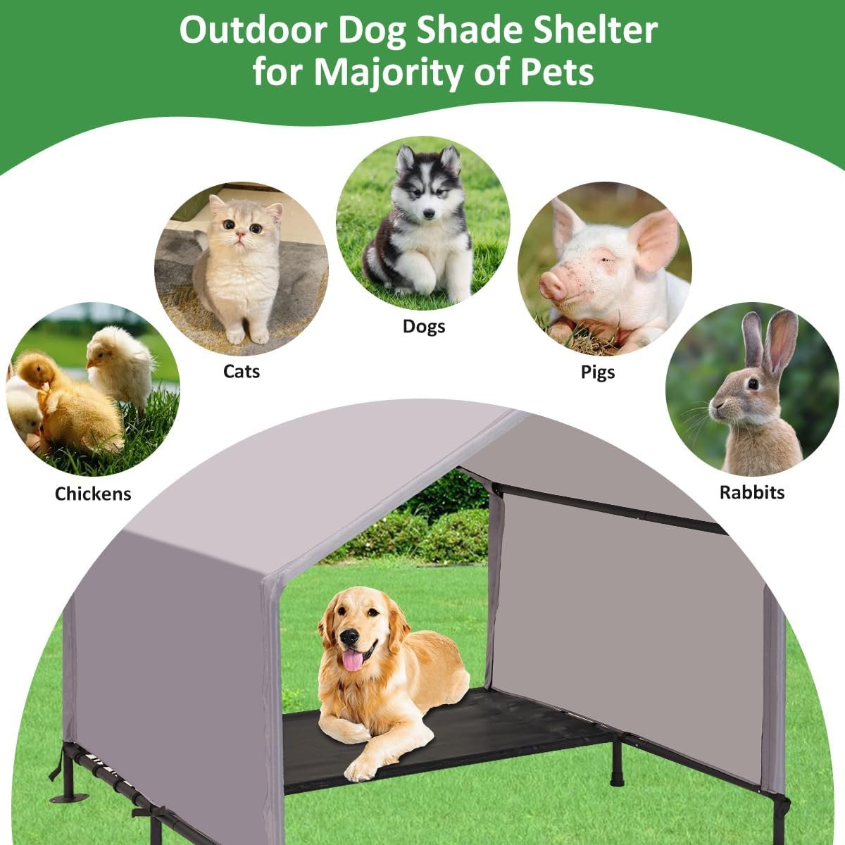 Breng de hele dag comfort naar uw huisdieren met ons Litail hondenhuis met bed! Deze hondentent in de buitenlucht is ontworpen voor huisdieren van alle maten (van kleine, middelgrote tot grote honden), waardoor ze de perfecte schaduwopvang krijgen tegen de hitte en regen. Het is ook geschikt voor katten, konijnen en zelfs kleine varkens, die een veelzijdige buitenparadijen bieden voor allerlei van je huisdierenvrienden!