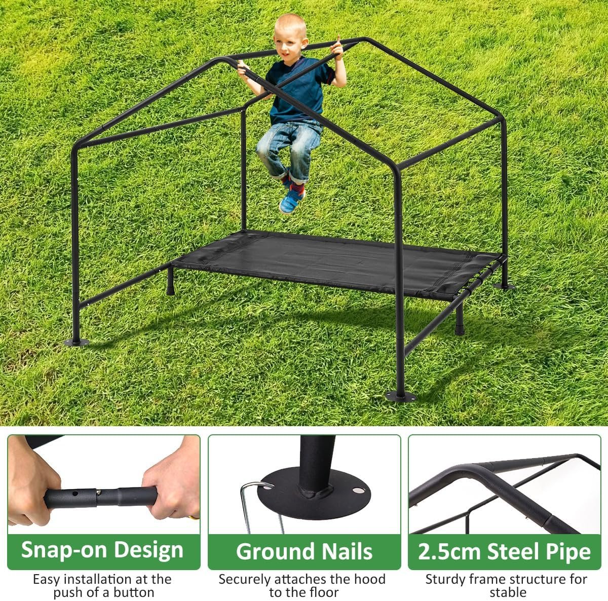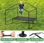 Stevige constructie- en stabiliteitsupgrade – Het frame van de tint van huisdieren is gemaakt van stalen slang met een poedercoating afwerking die voorkomt dat de tint van het huisdier roestig en corroderen. Uitgerust met gemalen nagels om de hondentent veilig aan het gras te houden om te voorkomen dat deze door hoge wind wordt overgeblazen