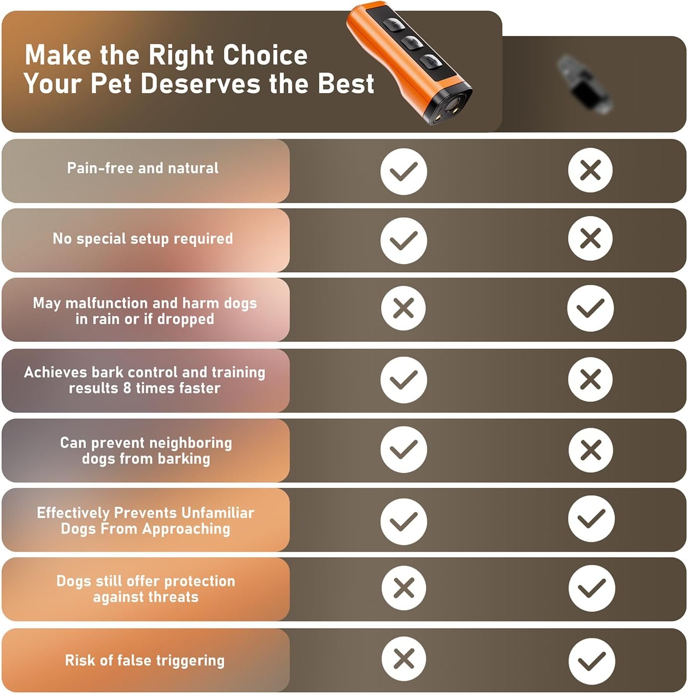 Veilige en effectieve modi: beschikt over een vaste frequentie van 25 kHz die niet detecteerbaar is voor mensen maar effectief voor honden. Zonder schok, trillingen, lawaai of fysiek contact is het volledig veilig voor honden van alle maten.