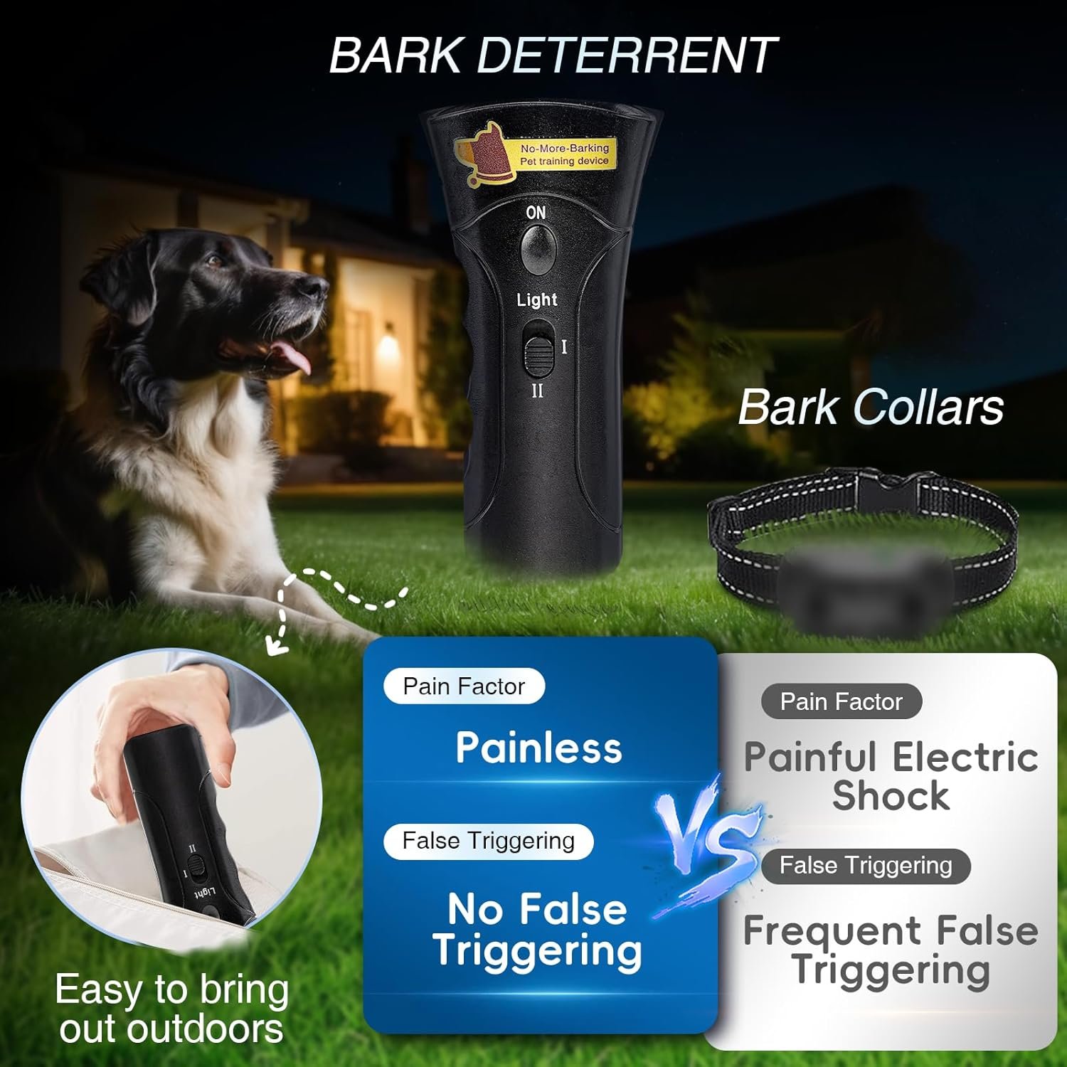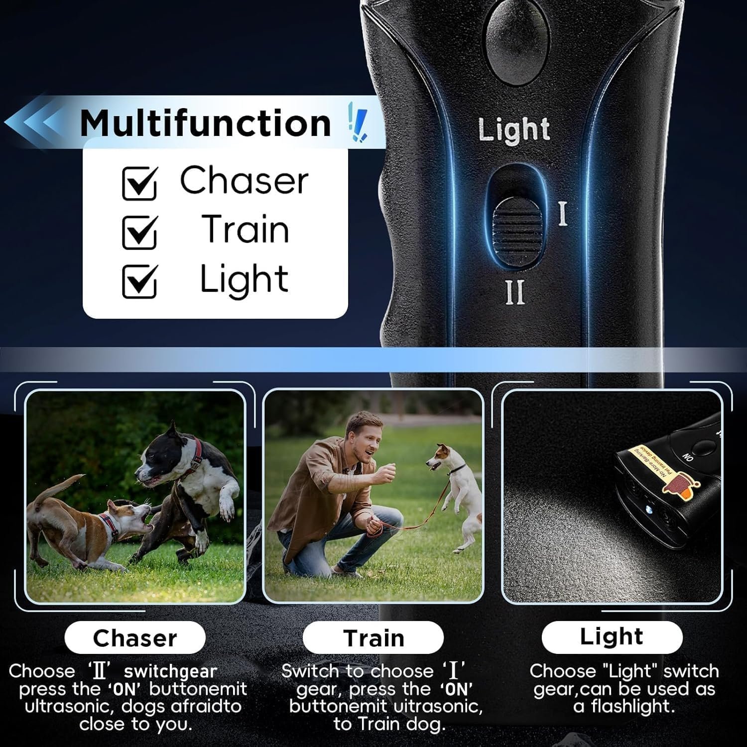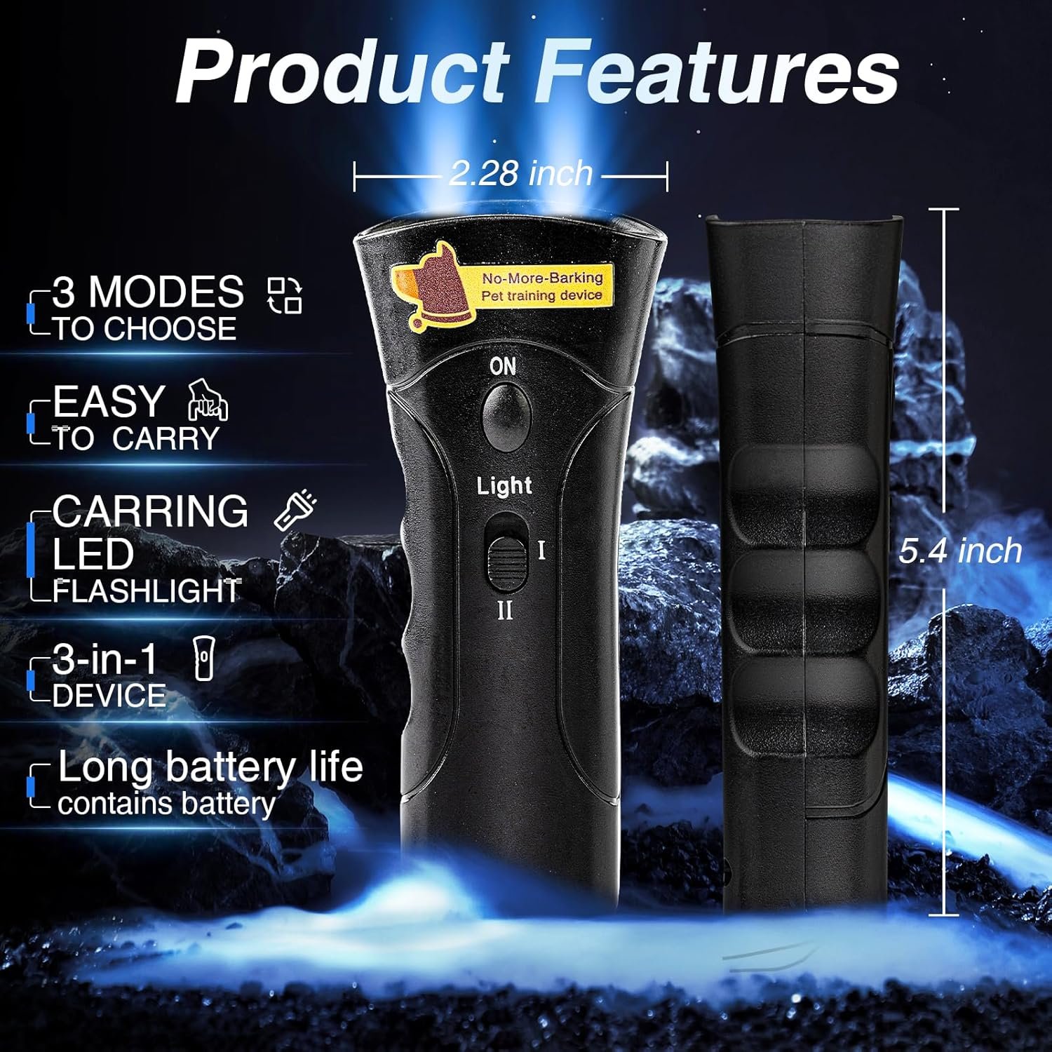 3-in-1 hondenschors afschrikking apparaten (bevat batterij): Deze stopbarkinghondapparaten zijn ontworpen voor hondentraining, blaffende honden en het wordt geleverd met een zaklampfunctie. De ultrasone schorscontrole zal de aandacht van uw hond trekken en helpen ongewenst gedrag af te schrikken, zoals blaffen, graven, krabben, bijten of springen op meubels. Gebruik voor de beste resultaten continu gedurende ten minste een week.