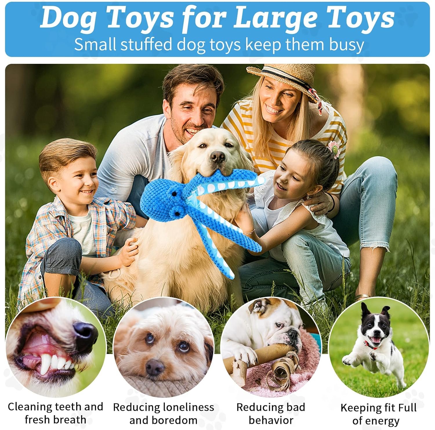 【Grote hondenspeelgoed geschenken】 Octopus gevulde hondenspeelgoed voor kleine, middelgrote en grote rassen zijn de cadeau -keuze voor uw honden op Kerstmis, Thanksgiving Day, Paasdag en andere speciale feestdagen, maar het wordt niet aanbevolen voor sterke agressieve kauwers; als u dat hebt Elke ontevredenheid over ons Octopus Dog -speelgoed, neem dan op tijd contact met ons op