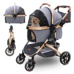 Hondenstroller met 4 wielen, vouwbare kattenwagen voor kleine/middelgrote/grote honden en katten tot 60 lbs, kinderwagen met afneembare drager, opslagmand, bekerhouder, 3 in 1 multifunctiona afneembaar