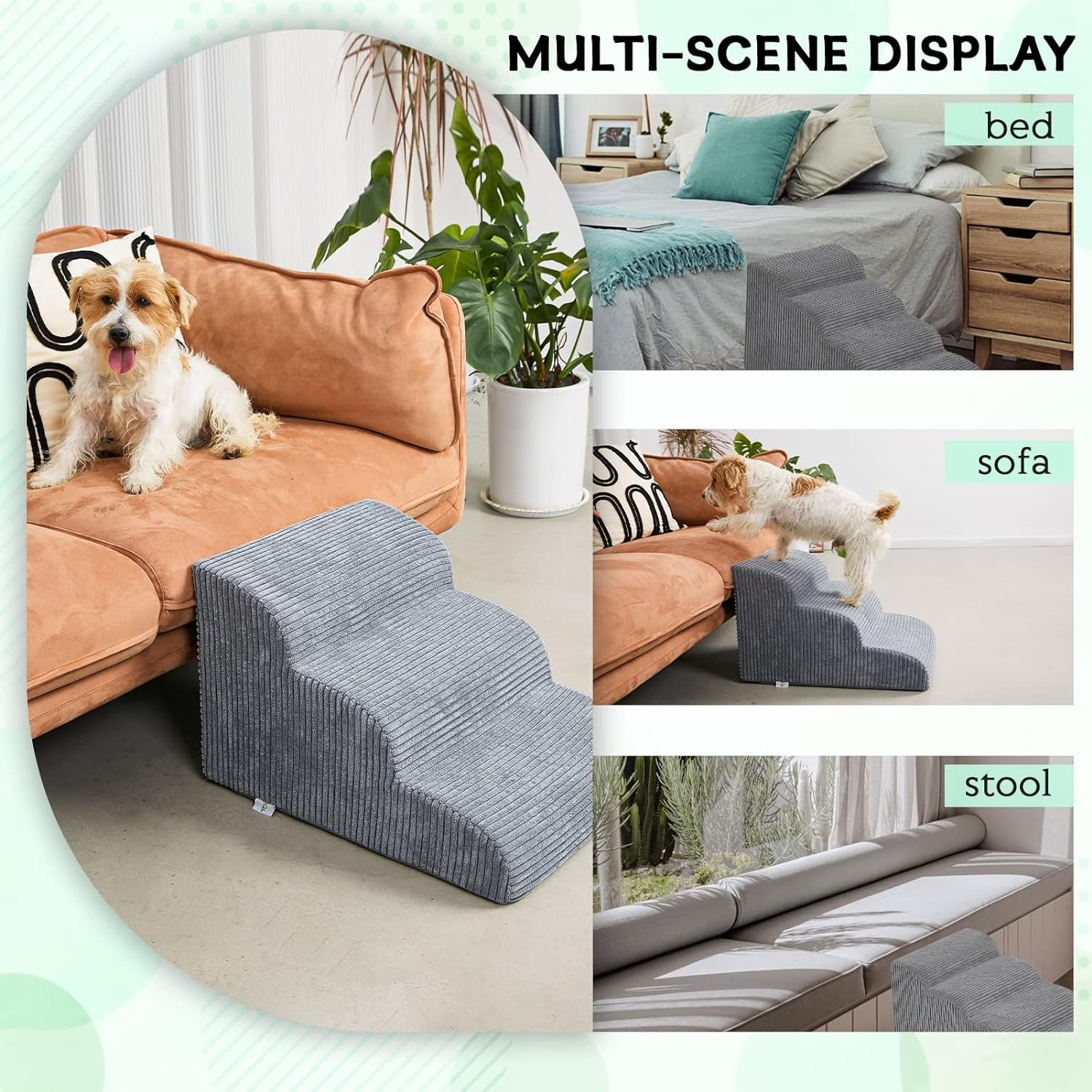 【Dubbele anti-slip】 Mesa Lemon Foam Dog Trap Cover is gemaakt van waterdichte corduroy om meer wrijving tussen de poten van uw huisdier en de stappen te vergroten dan andere stoffen. En de hondenstap heeft rubberen stippen op de bodem om de trap op zijn plaats op zijn plaats te houden door extra grip.