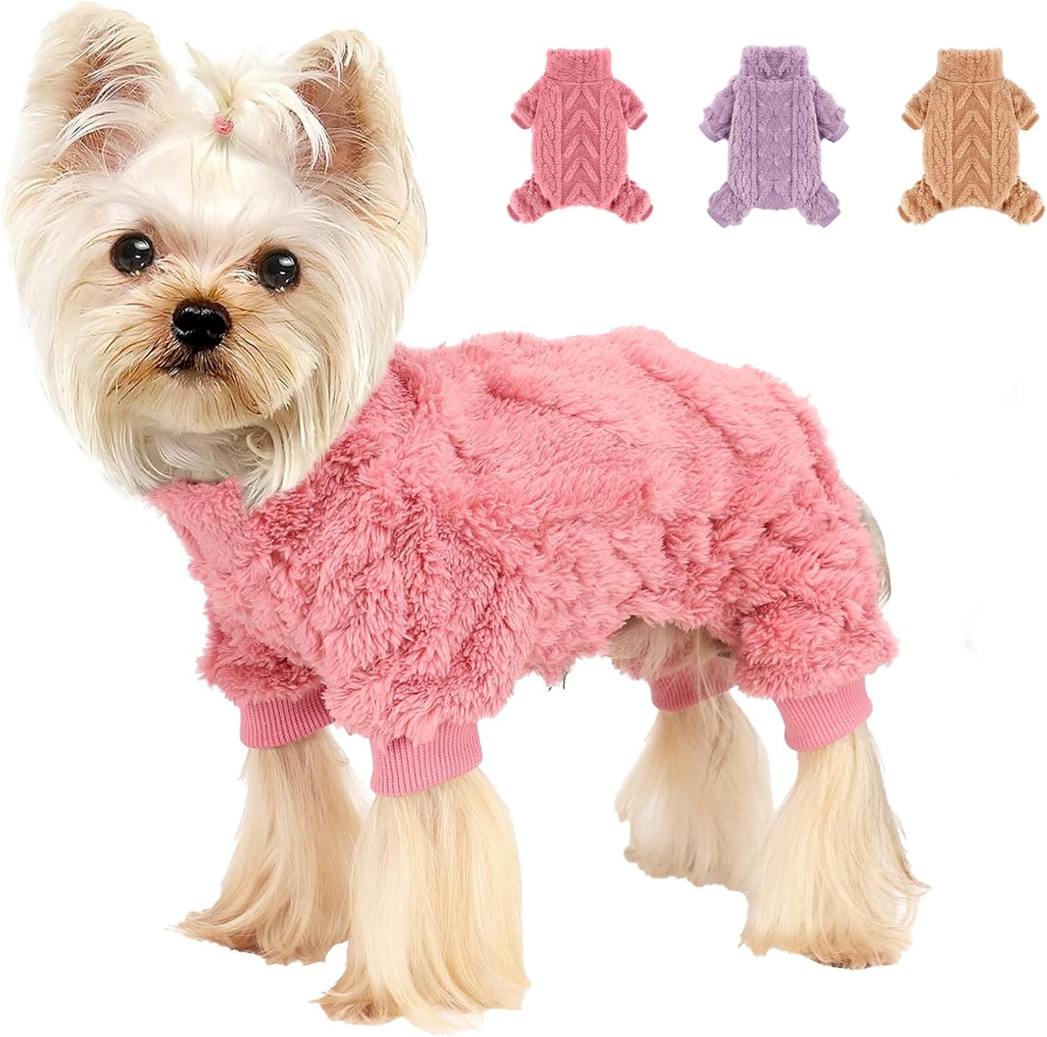 Hondentrui voor kleine honden meisje turtleneck fleece honden trui zachte puppy trui honden oneesies pyjama’s 4 pootged honden jumpsuits warme xs hondenkleding herfst winterkleding outfit, roze