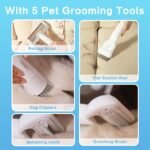 【Rustige vacuüm trimmer】 Onze hondenclippers hebben een low-ruis ontwerp om een kalmerende verzorgingsomgeving voor huisdieren te creëren, hun angst voor kapsels te verlichten, prioriteit te geven aan het gebruik van onze borstel voordat ze worden gesneden, wat een stressvrije verzorgingssessie garandeert