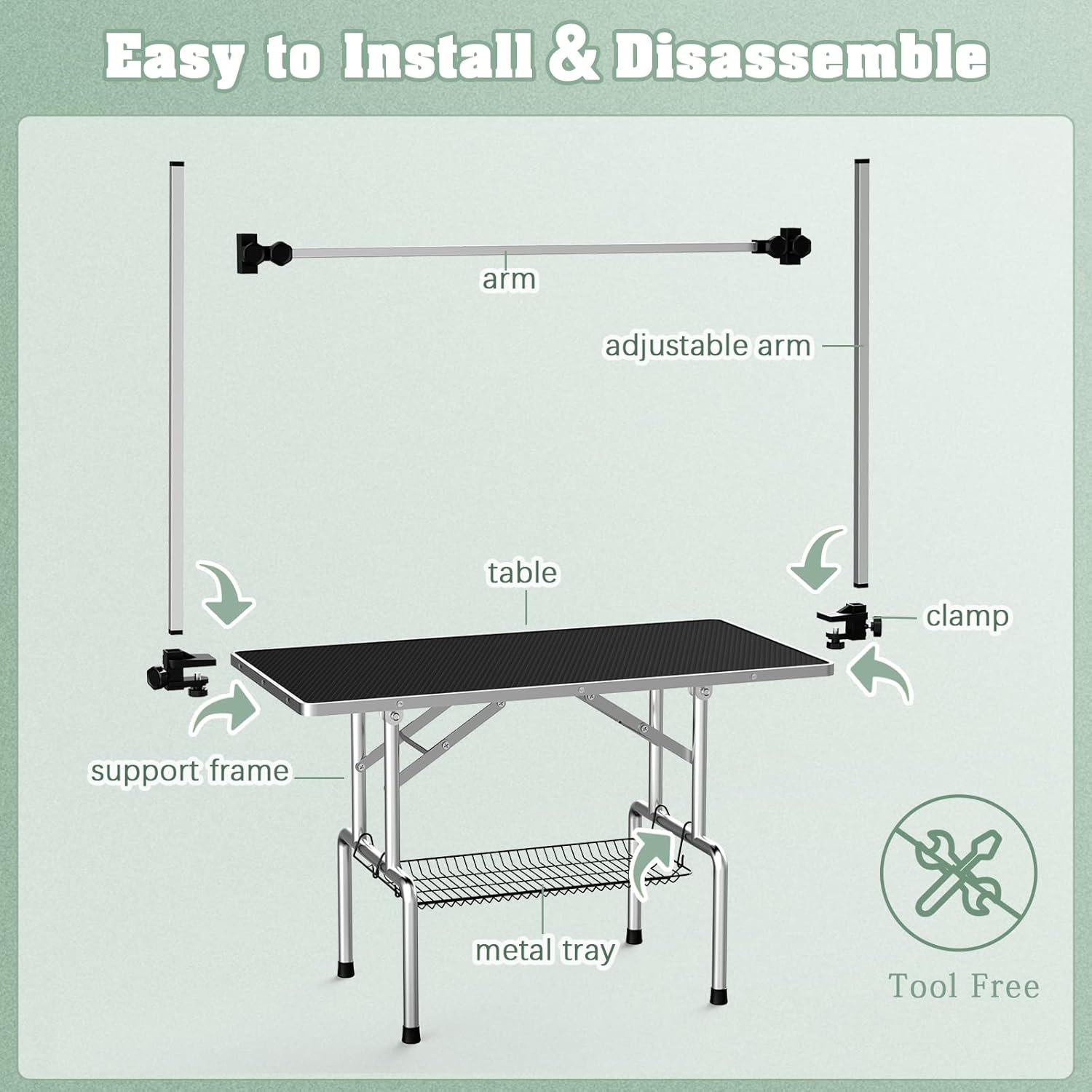 Hondenverzuilingtafel, verstelbare groot huisdierdroogde bureaublad, opvouwbare badbureau met armen, strop, mesh -lade, maximale capaciteit tot 330 pond