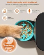 HoneyGuaridan Automatische kattenvoerder, Cat Food Dispenser met roestvrijstalen kom en een langzame voederkom, huisdiervoeder tot 6 maaltijden per dag, getimede kattenvoer met desicante tas