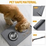 Hubulk -hondenvoedingsmat, 100% waterdichte voedingskwaliteit Siliconen Pet Food en Water Bowl Placemat, vaatwasser, hoog verhoogde rand om morsen, niet -sliplade te voorkomen om messes op de vloer te stoppen (19 “x12” x0,5 “, grijs)