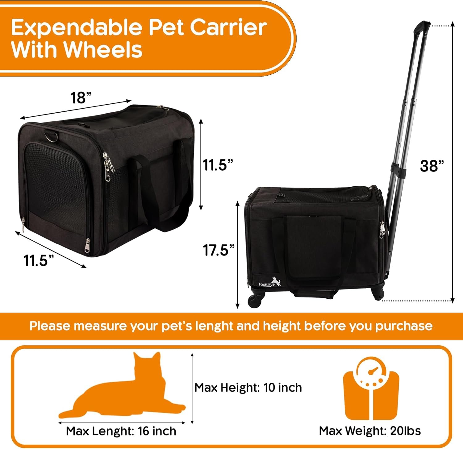 De Posh Pup levert huisdierdrager met wielen trolley is ontworpen met gemak en gebruiksgemak in gedachten. Onze trolley is niet alleen verwijderbaar en opvouwbaar, maar de wielen zijn ook afneembaar, waardoor het een cent is om op te slaan wanneer ze niet in gebruik zijn.