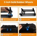 Onze massieve rubberen wielen zijn zowel duurzaam als stil, en ze zijn ook verwijderbaar. De voorwielen bieden een 360 ° zwenkwandeling voor eenvoudig manoeuvreren, terwijl de achterwielen directioneel zijn en superieure stabiliteit en controle bieden in krappe ruimtes en drukke plaatsen. In tegenstelling tot onze concurrenten, die alle vier de zwenkwielen gebruiken – hun dragers moeilijk te controleren maken, vatbaar voor rollende zijde en wijd zwaaiend op beurten – hebben we onze trolley ontworpen om op de juiste manier te functioneren, waardoor een soepelere, meer gecontroleerde ervaring wordt gewaarborgd .