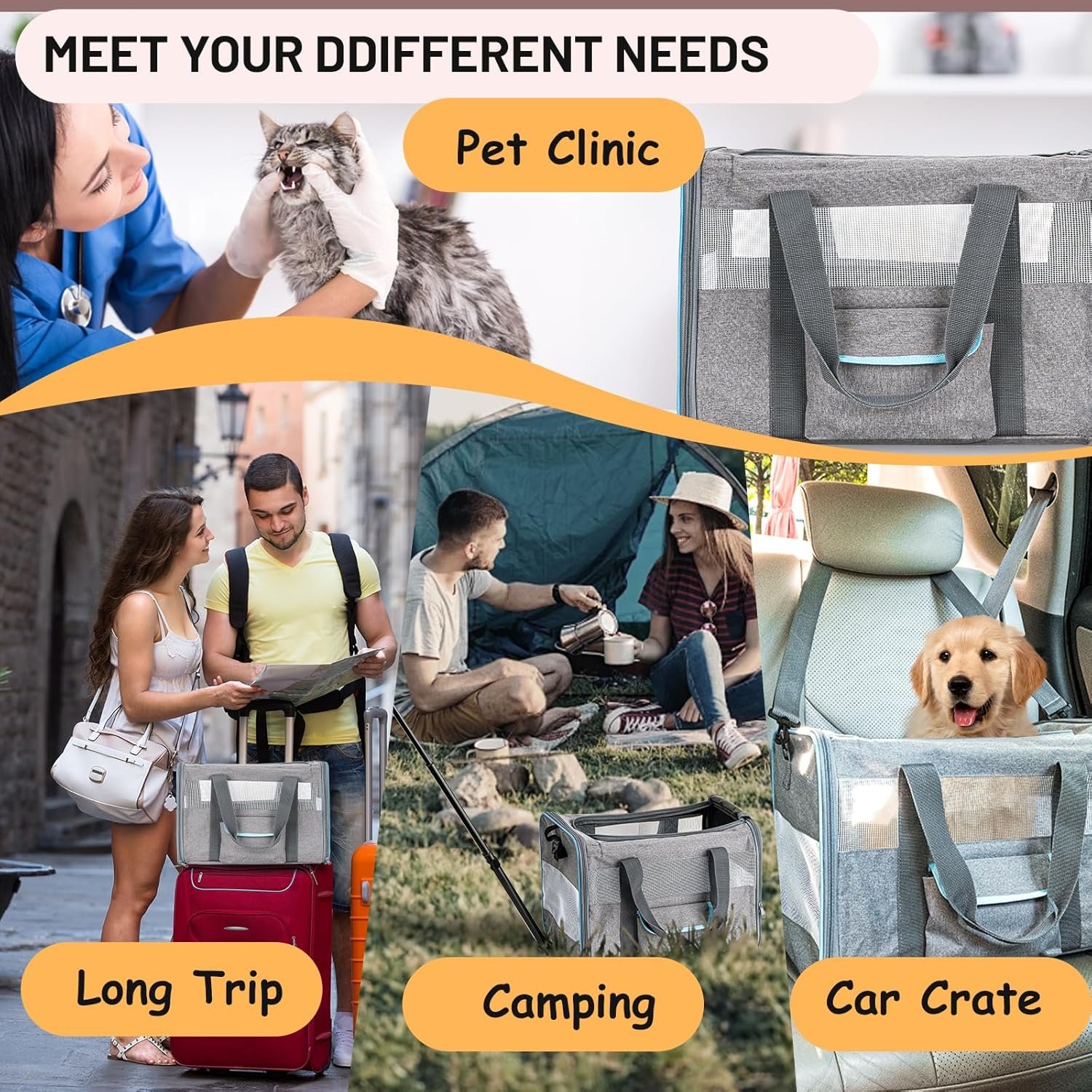 【Pakken voor kleine honden en katten】- Deze zachte zijdige drager voor katten of honden heeft 4 maasramen voor optimale luchtstroom en maximaal zichtbaarheid. Onze goedgekeurde luchtvaartmaatschappij Airline wordt ook geleverd met een gezellige mat om uw huisdier comfortabel te houden. De ingebouwde veiligheidsriem zorgt ervoor dat huisdieren uit ontsnapping en de zijkantzak perfect is voor PET-traktaties en speelgoed.