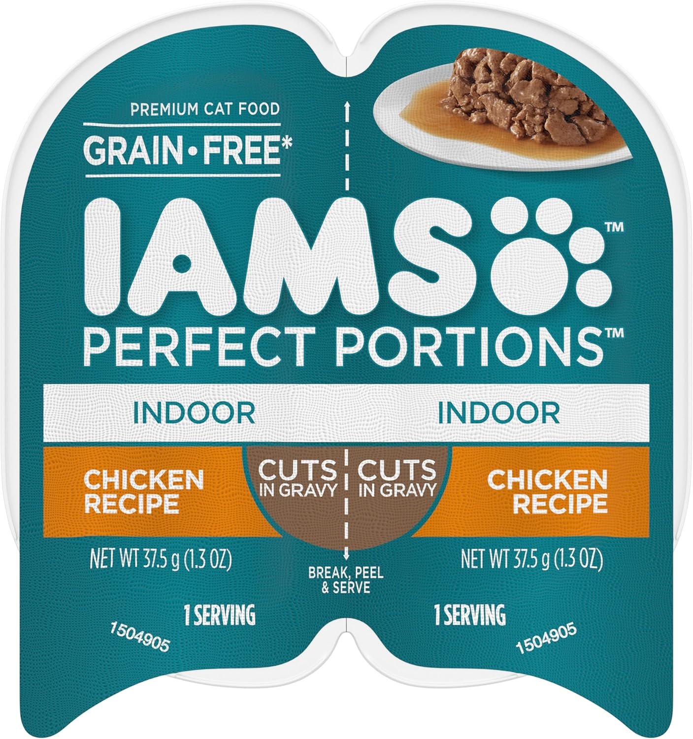 Iams perfecte porties indoor volwassen graanvrij* natte kattenvoer snijwonden in jus, kiprecept, (24) 2,6 oz. Gemakkelijke peeling Twin-Pack Trays