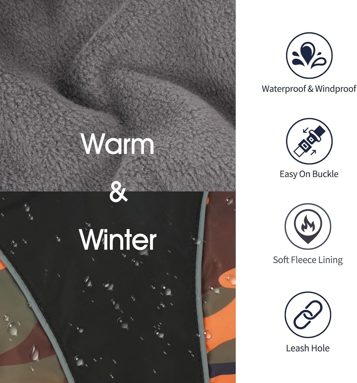 Winddicht en waterdicht: gemaakt van waterbestendige stof, houdt de IECOII Dog-winterjas je hond droog en warm op een mistige dag, zelfs weinig regen of besneeuwde dagen. Het is perfect voor buitenactiviteiten zoals wandelen, jagen, skiën of rennen op koude dagen