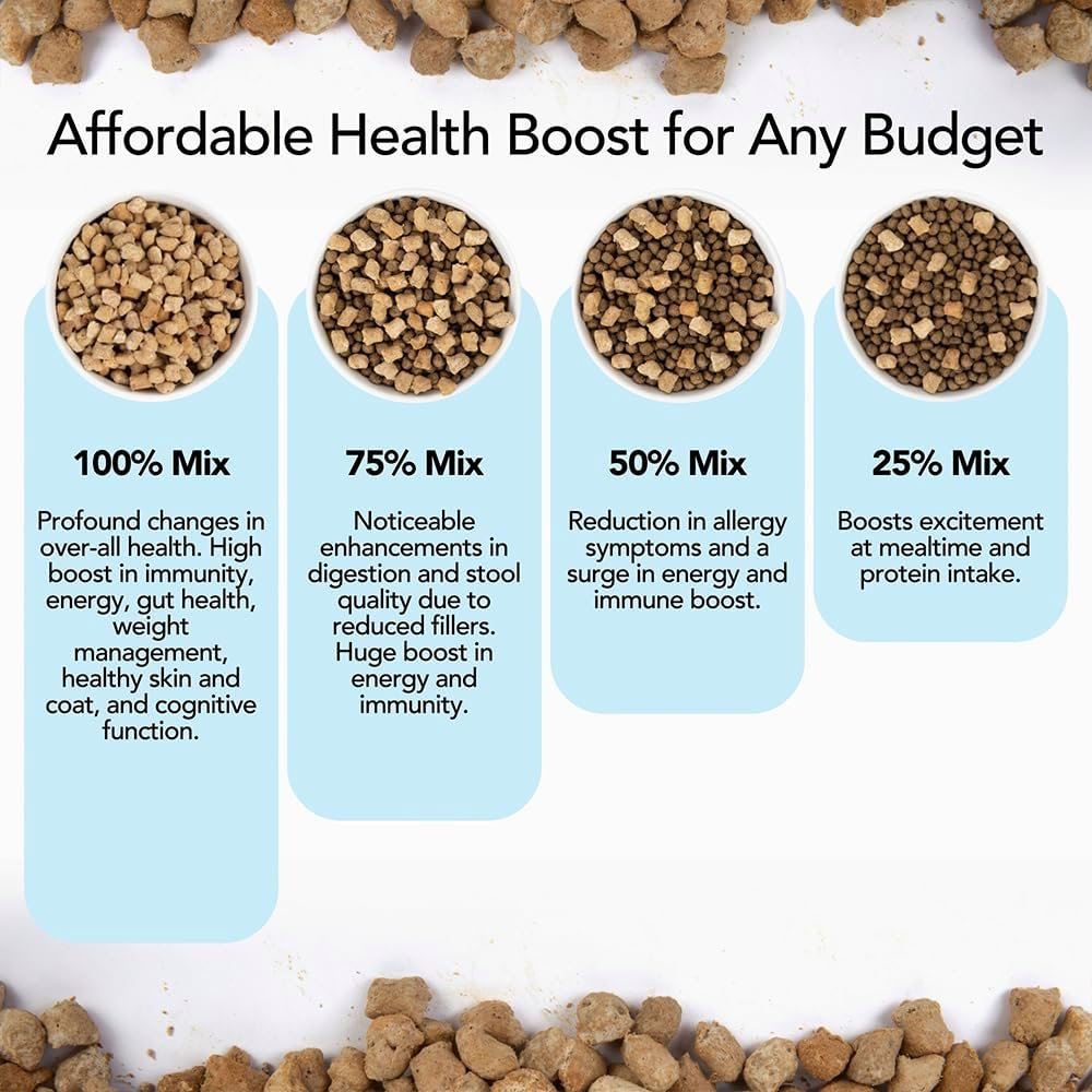 Maaltijdmixer: vervang het aantal bestaande voedsel van uw hond door de natuur goed. Zelfs de kleinste hoeveelheid kan enorme voedingsvoordelen toevoegen aan het dieet van uw pup.