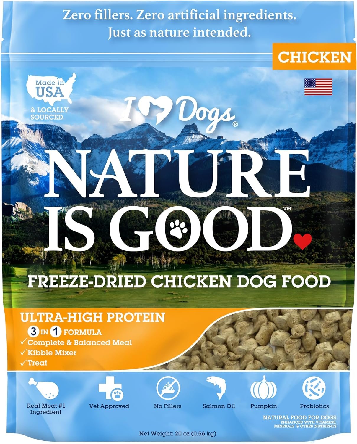 iHeartDogs Natuur is goed gevriesdroogd hondenvoer-door dierenartsen goedgekeurd, vulvrij rauw hondenvoer, maaltijdmixer of behandeling ondersteunt algehele gezondheid en welzijn-kip, 20 oz