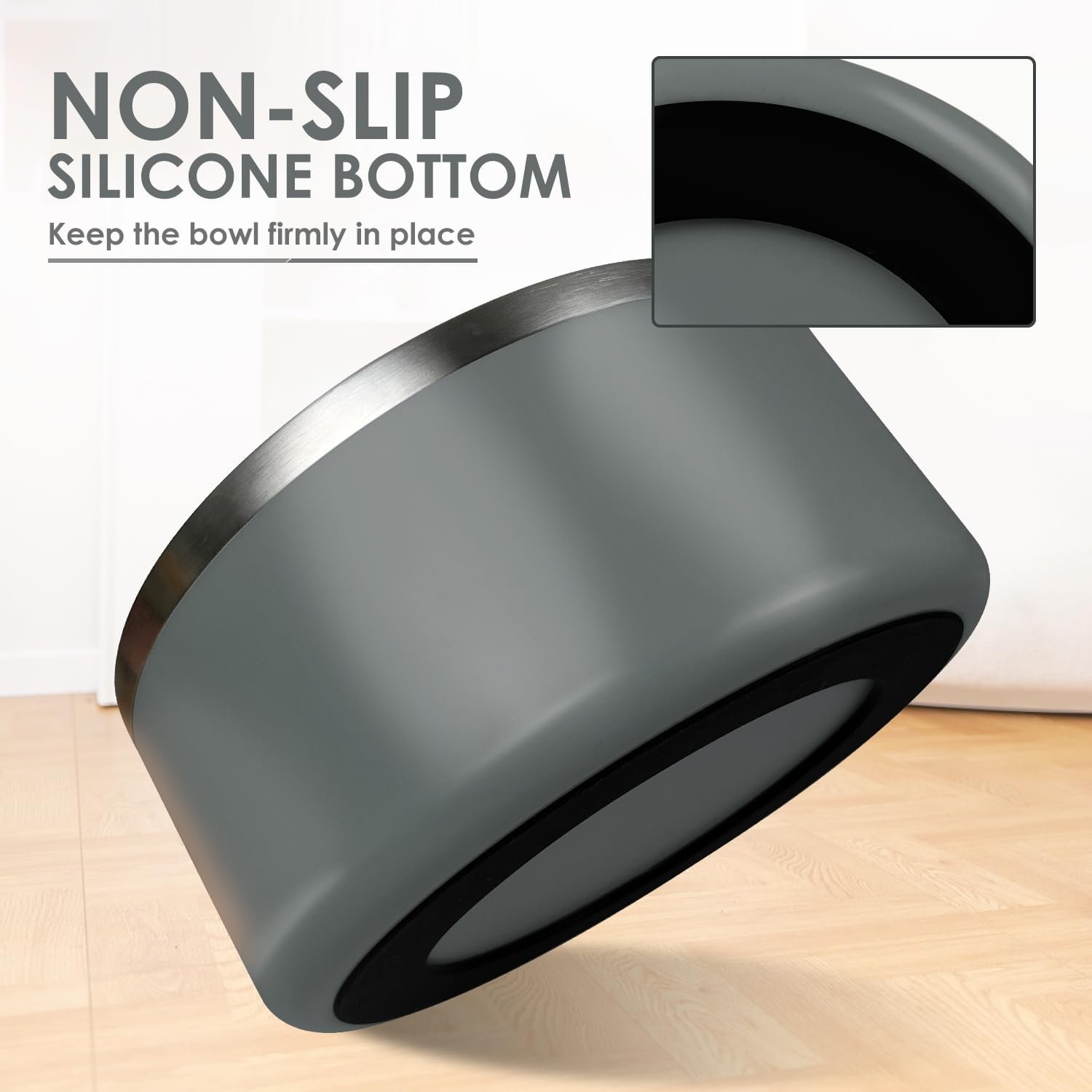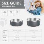 Ikitchen hondenkom voor voedsel en water, 64 oz roestvrijstalen toevoerkom van huisdieren, duurzame niet-skid geïsoleerde zware dienst met rubberen bodem voor middelgrote honden (64 ounces/8 kopje, grijs)