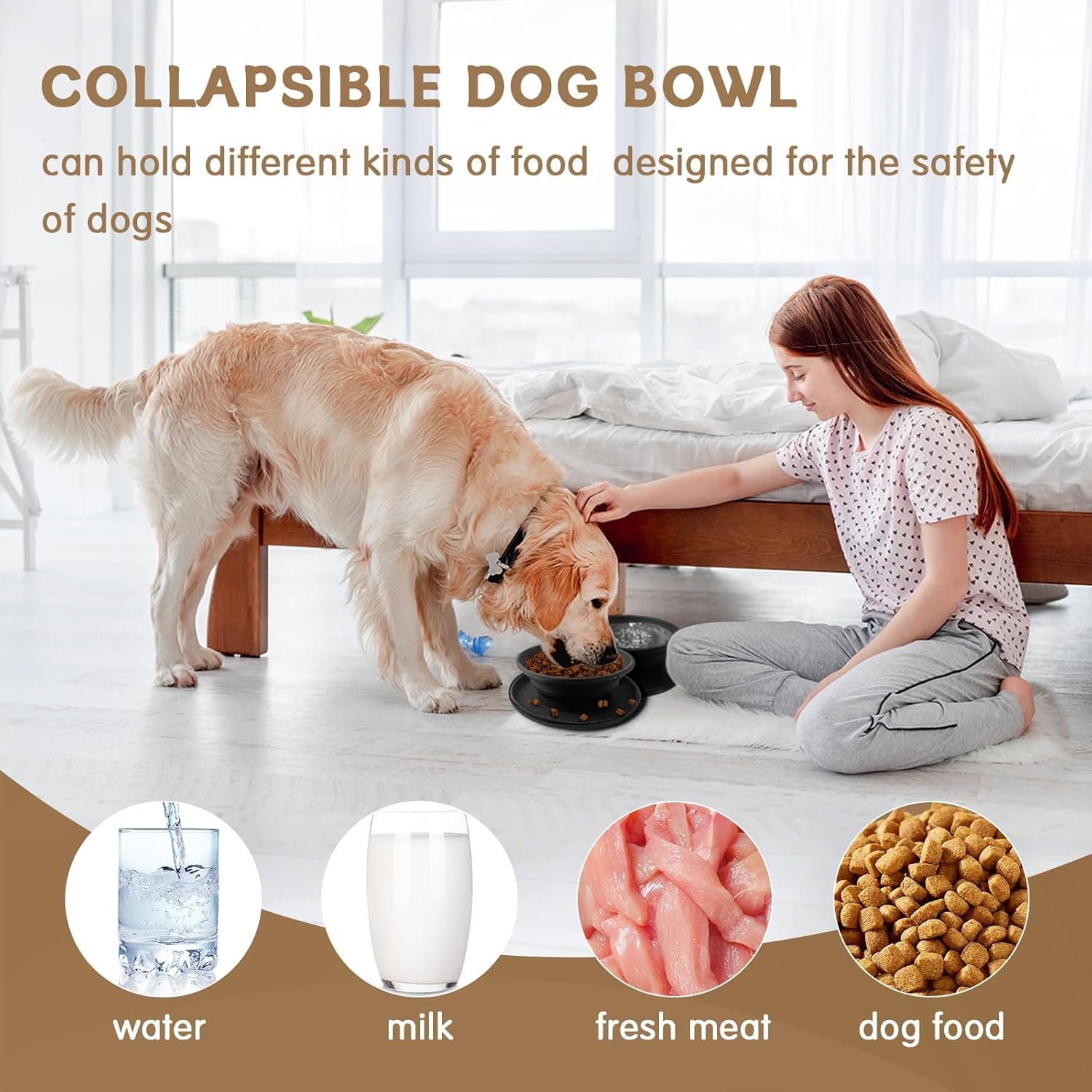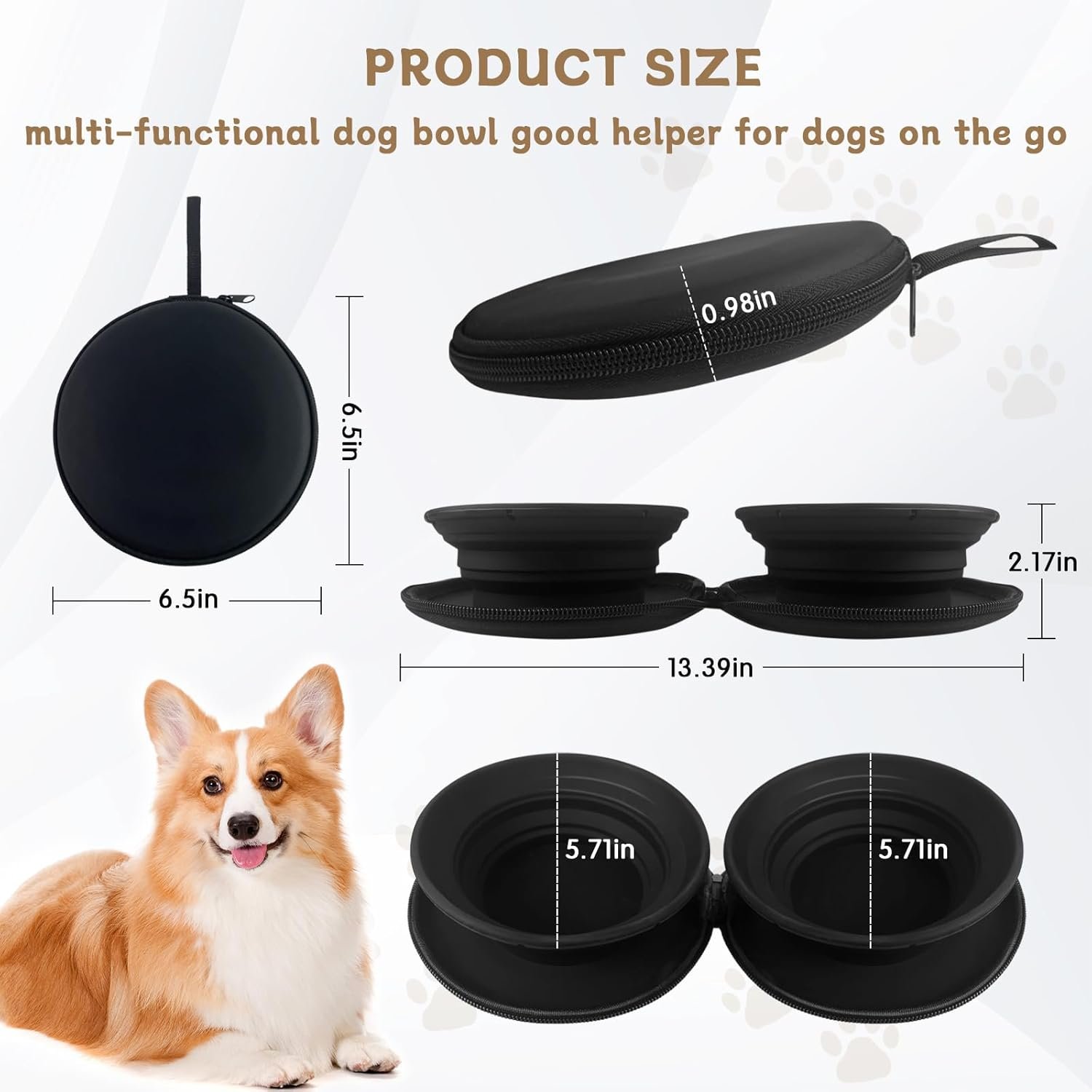 Inklapbare hondenkommen – 2 in 1 opvouwbare draagbare PET -voeding Dog Reiskommen voor reizende kamperen Walking (zwart)