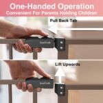Een handige gemak: open de poort moeiteloos met één hand, zelfs terwijl je je baby of items vasthoudt. Het zwaait 180 ° en houdt open op 90 ° voor handsfree gemak, het verbeteren van de veiligheid en gemak voor drukke gezinnen