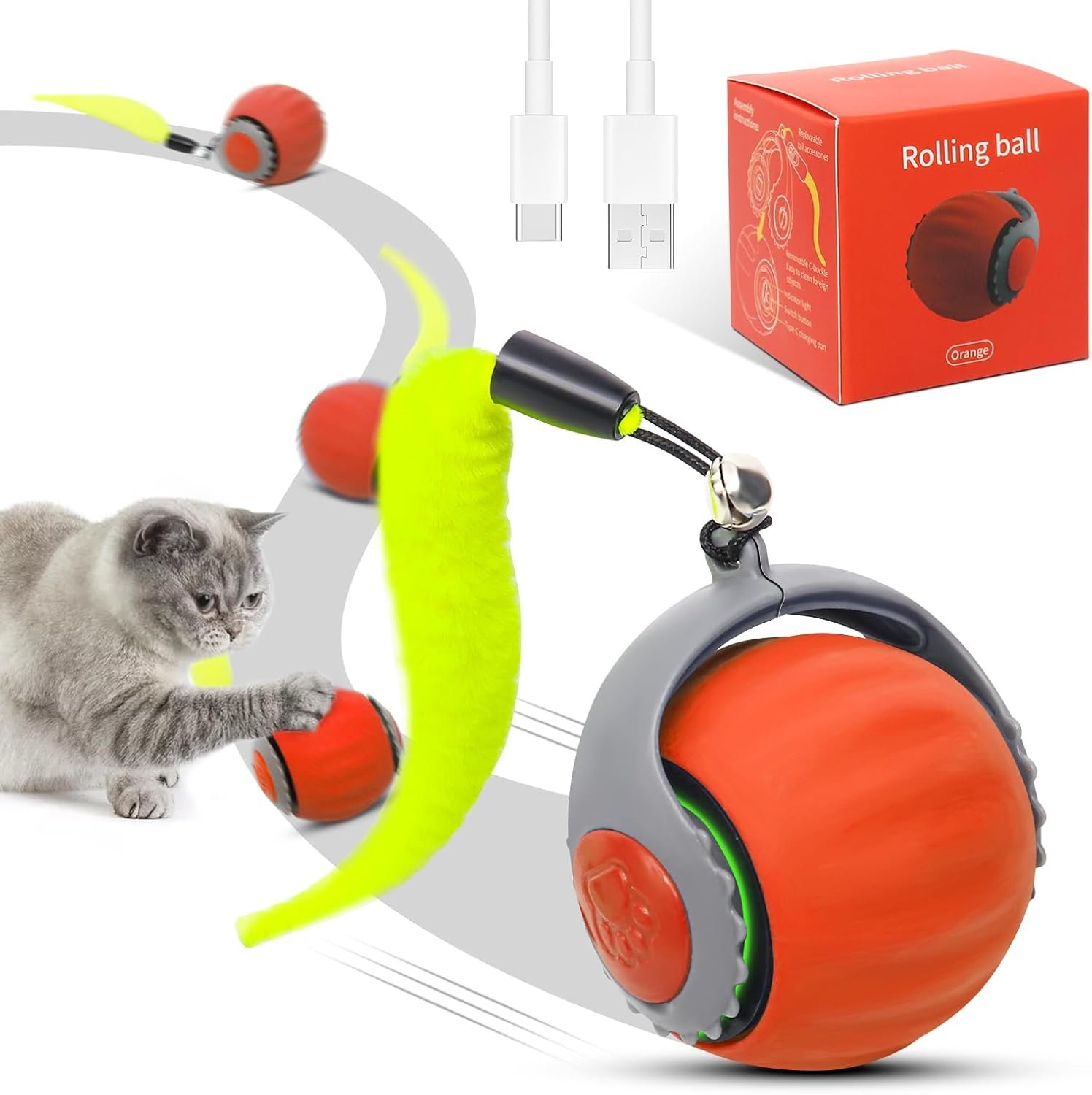 Interactief kattenbalspeelgoed, snelle staart 2.0 kat speelgoed, automatisch bewegende balspeelgoed voor binnenkat, anti depressie huisdierspeelgoed, snelheid verstelbaar, oranje