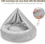 ❤ultra-soft pluizig puppybed: ultieme huisdierbed met deken, bedekt met rozenwervels korte faux vacht en gezellige suede stof, die de lichaamswarmte van uw huisdier effectief behoudt. Ons kittenbed neemt een hoge veerkracht PP Cotton aan en ondersteunt betere slaap en houdt de warmte. De niet-slip bodem houdt het katbed op zijn plaats op tegel- en hardhouten vloeren in het huis.