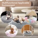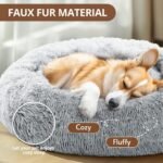 JollyVogue Medium kalmerend hondenbed, anti-angst donut Cuddler Cat bed met antislip bodem, donzige faux bont machine wasbaar huisdierenkussen voor middelgrote hond en kat, 27 “/rookgrijs