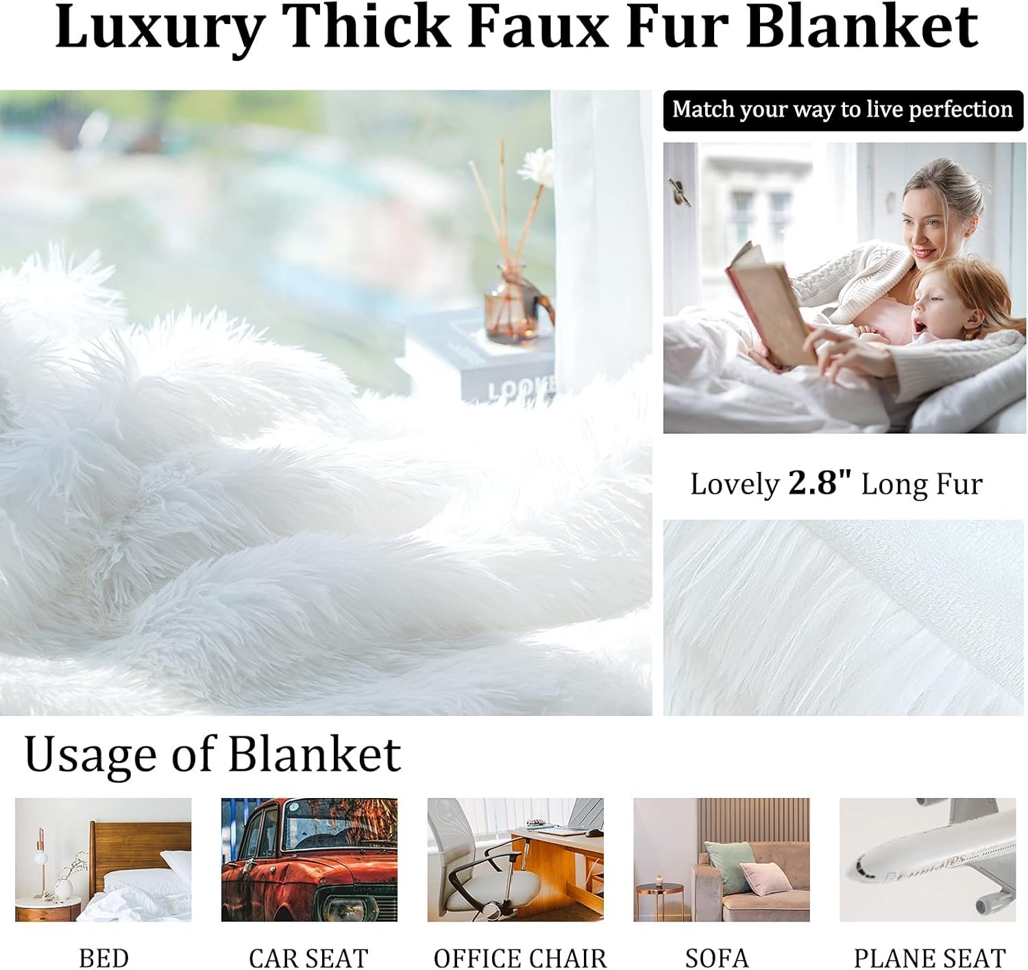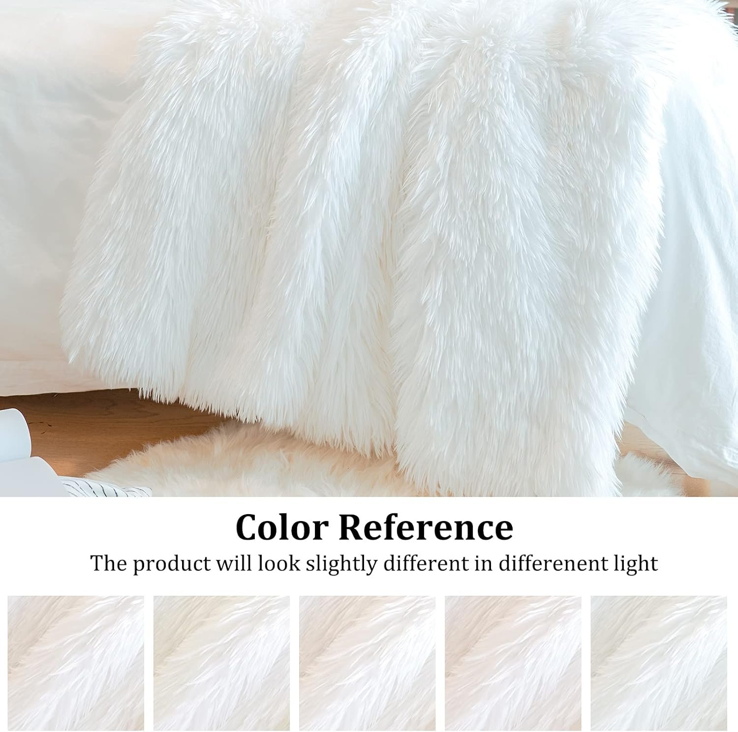 Joniyear extra 2,8 “lang haar pluizige faux fur gooi deken 50” x 60 “, luxe zachte decoratieve fuzzy harige dekens voor bank, gezellige pluche ruige dekens voor sofa bed, schattige mooie deken voor huisdier, wit, wit, wit