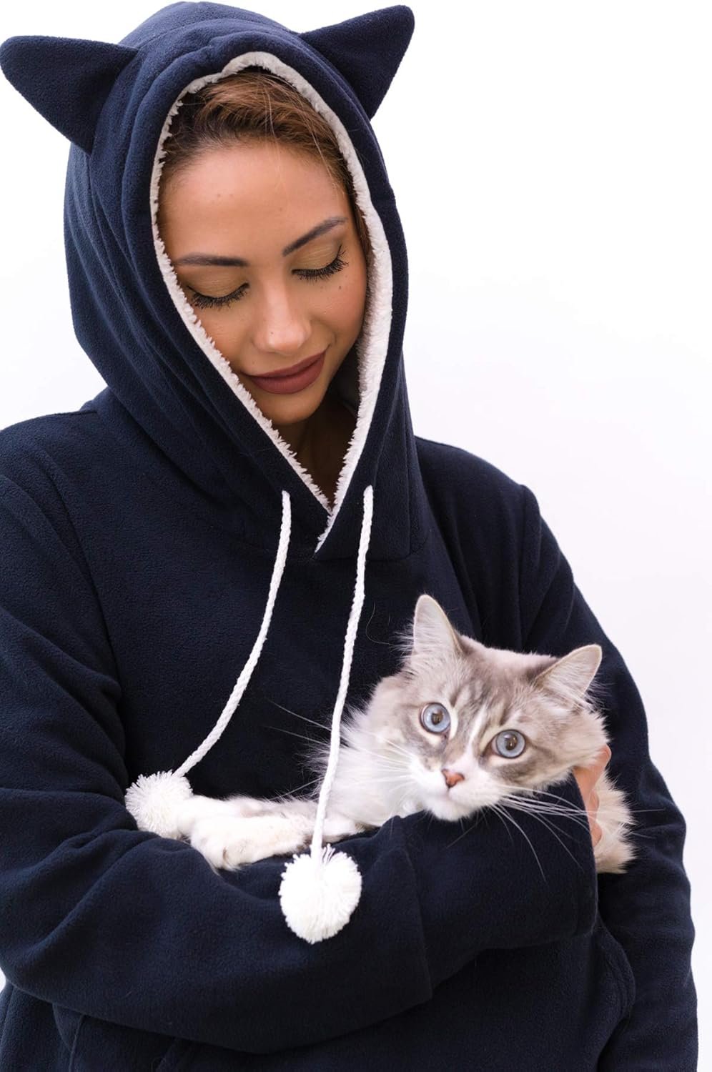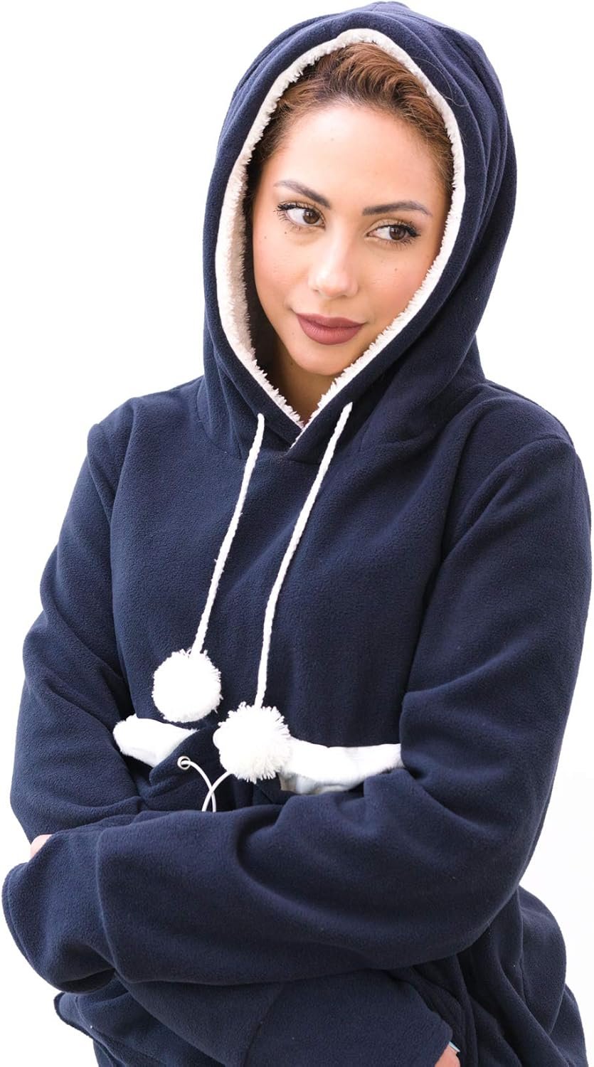 Kangakitty Pouch Hoodie met oren | Wearable Cat & Small Dog Carrier | Dames lange mouw pullover sweatshirt (x-groot) blauw