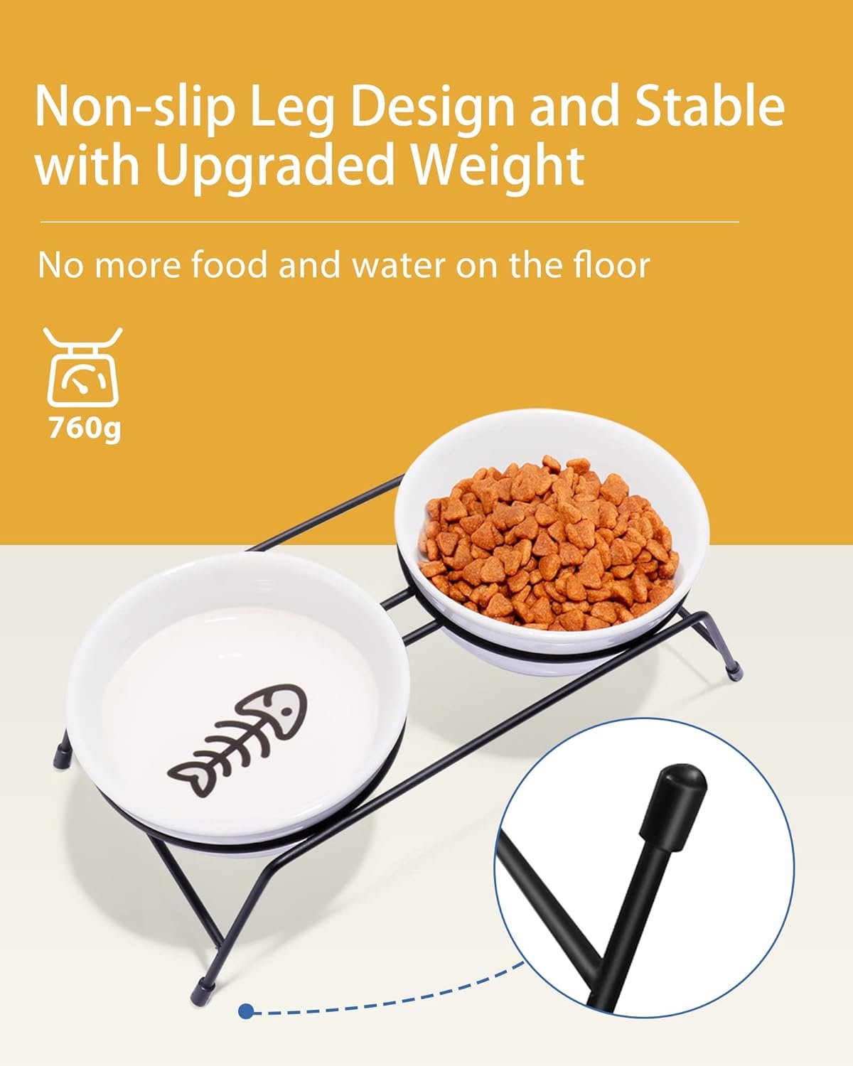 Kattenkommen, geüpgraded 13 oz keramische verhoogde kattenkommen voor voedsel en water, verhoogde 2 kattengerechten met roestvrijstalen standaard niet-slip en anti-reust, voor binnenkatten en kleine hondenkom, vaatwasser veilig