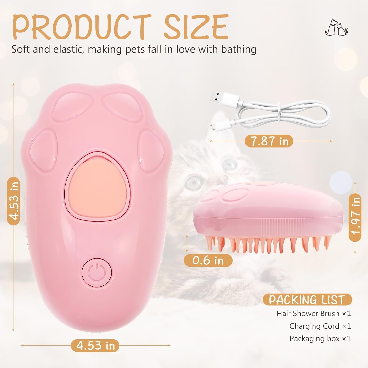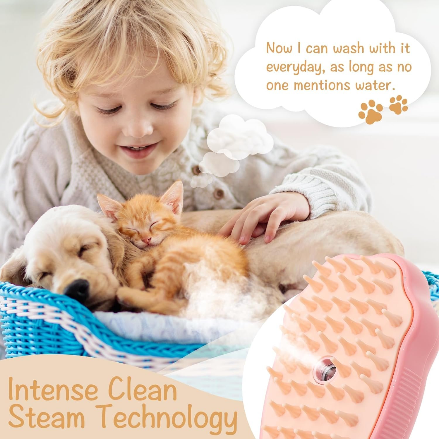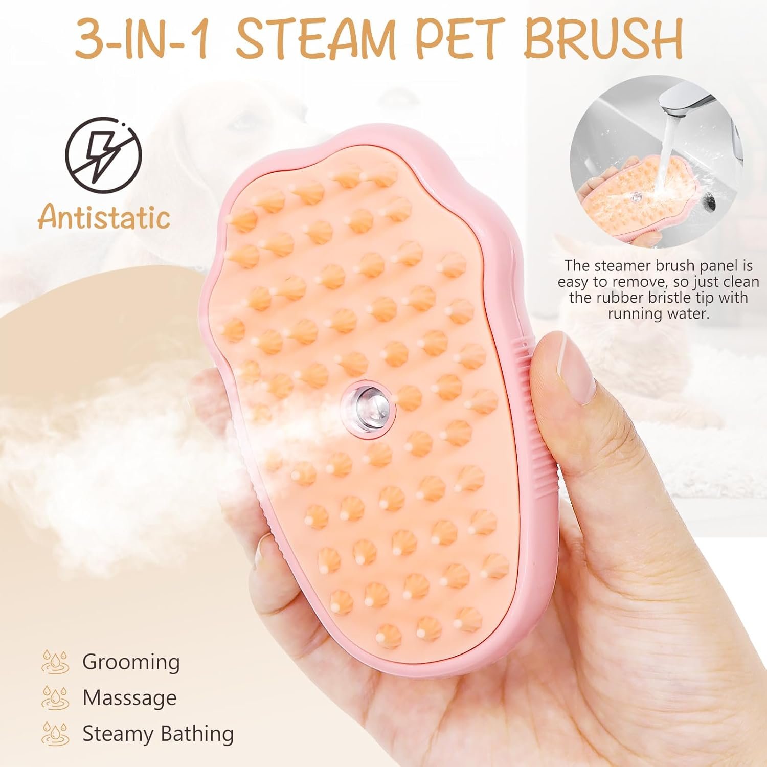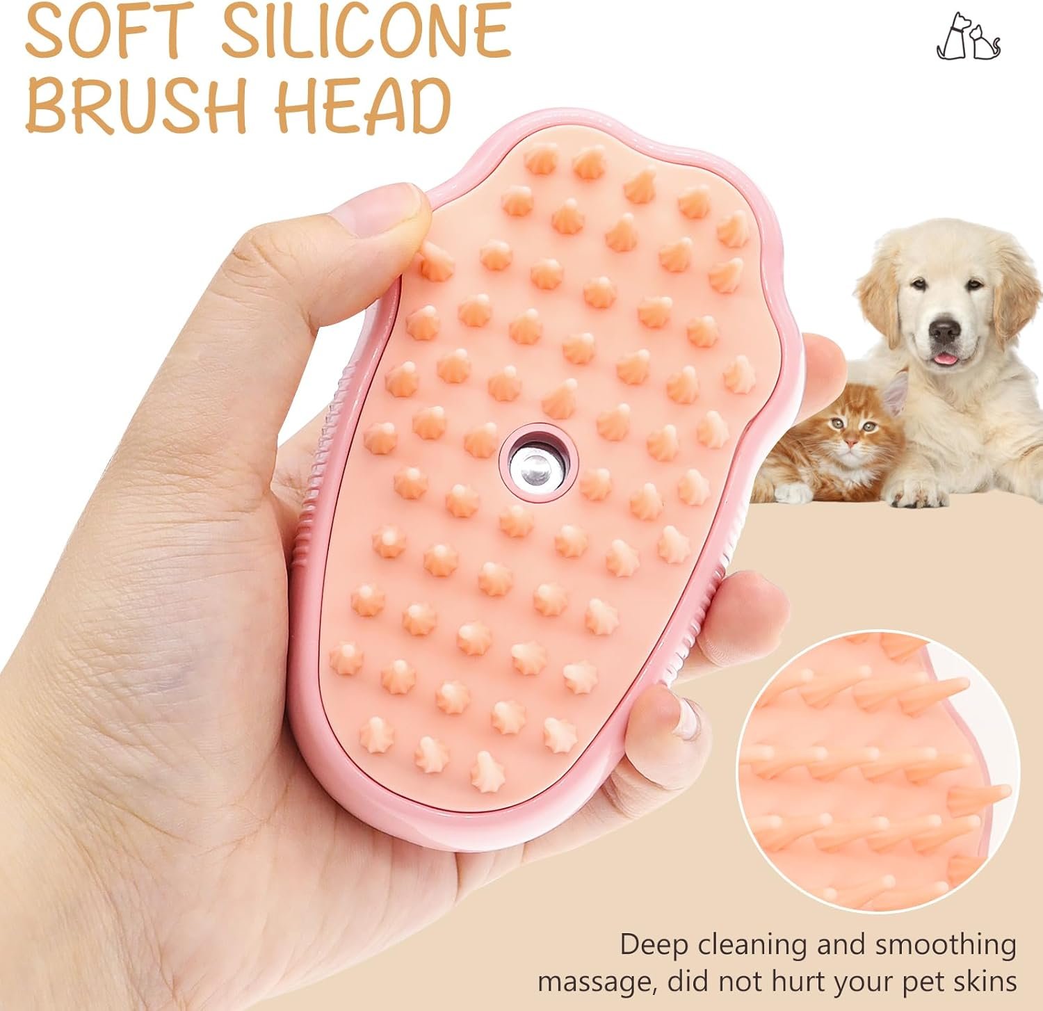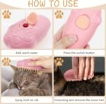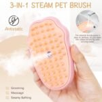 Kattenstoomborstel voor het afwerpen: 3-in-1 siliconen stoomborstel voor katten, oplaadbare stoomkatborstel, stomende huisdierborstel, hondenstoomborstel voor het afwerpen, kattenborstel met stoom-roze