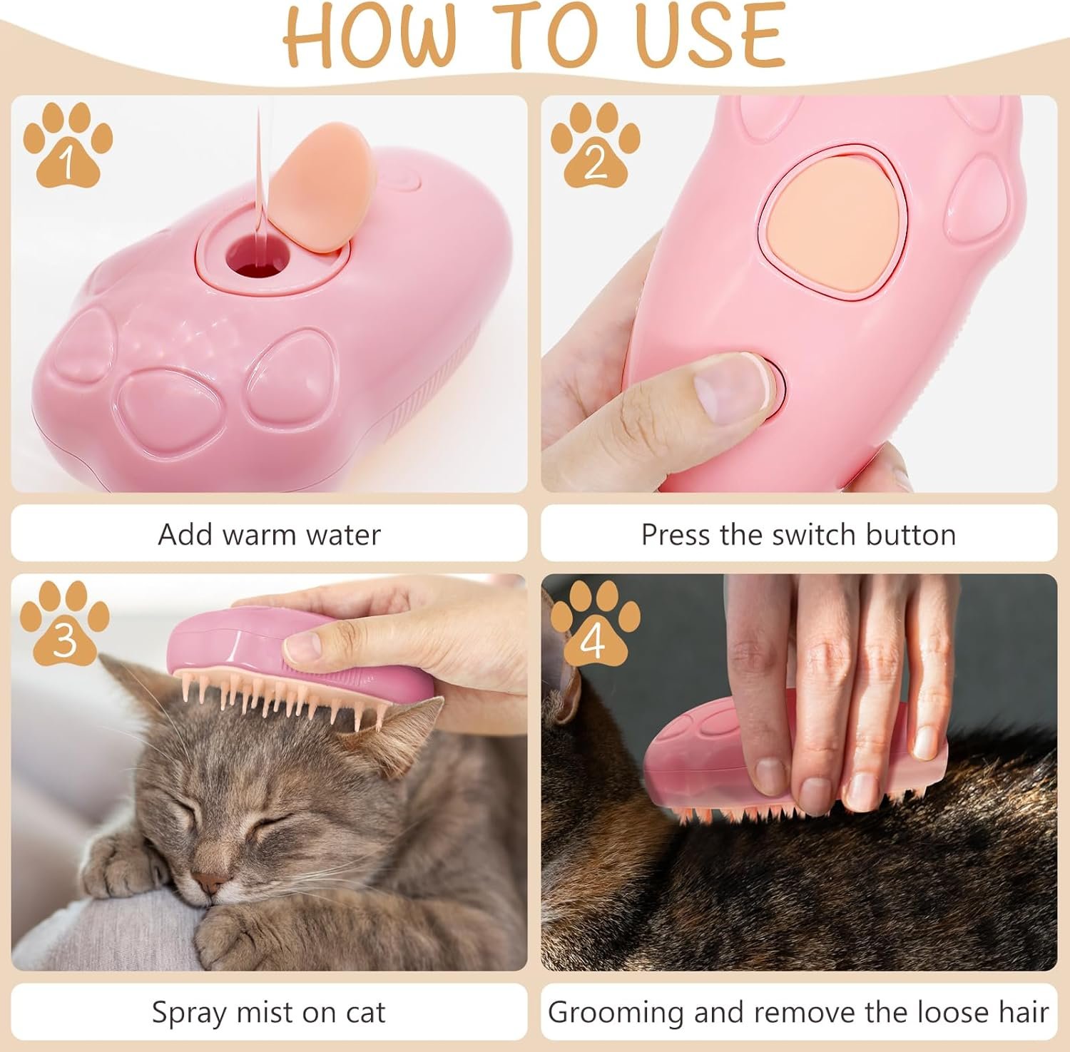 【Meerdere toepassingen】 U kunt deze stoomborstel gebruiken voor het afwerpen, spuiten en masseren van de kat, en het haar dat op de borstel is geplakt, is gemakkelijk te verwijderen, wat de ervaring uitstekend maakt.