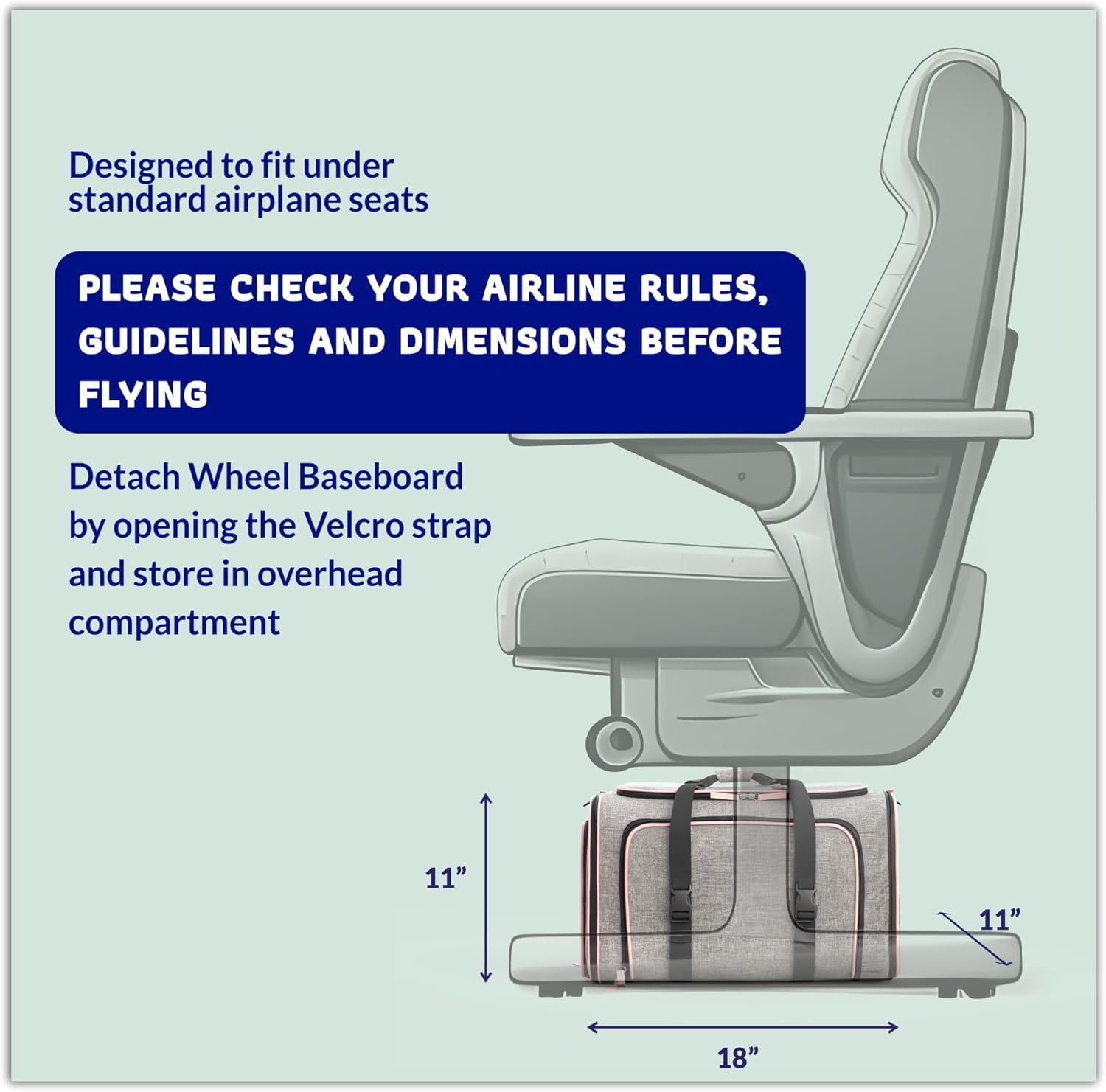 Airline Compliant: gemaakt om onder de voorstoel te passen op de meeste luchtvaartmaatschappijen. Controleer de regels van uw luchtvaartmaatschappij voordat u koopt. Het heeft een riem en handvat om aan uw koffer te bevestigen om gemakkelijk te bewegen. Uw huisdier kan zich uitstrekken tijdens autoritten en onder de stoel in het vliegtuig