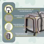Geweldig voor eenvoudige reizen voor huisdieren: deze drager heeft wielen om het voor u gemakkelijker te maken om te bewegen. Het handvat en de wielen zijn soepel en stil, dus je huisdier wordt niet rondgedronken. U kunt de drager ook van de wielen halen als u hem als een gewone wilt gebruiken.