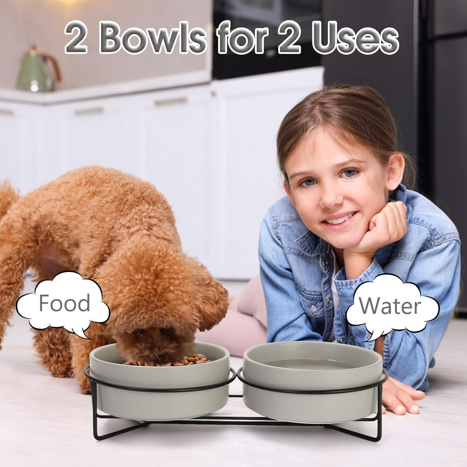Keramische hond en kattenkom ingesteld met standaard, 1,7 kopjes hondenvoer en waterkom geschikt voor kleine en middelgrote huisdieren (13,5 oz donkergrijs)