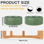 Keramische huisdierenkommen voor honden en kat, geen lekkagehondenvoer en waterkom ingesteld met antislip houten standaard, riased puppy voedingsgerechten geschikt voor kleine, middelgrote en grote kattenhonden, groen 28 oz