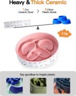 Bespaar je tijd – honden langzame feeder kom heeft een concaaf ontwerp op de bodem, deze keramische hondenkommen zijn zwaar genoeg (ongeveer 2,5 pond) zodat de kleine hond niet gemakkelijk de keramische huisdierenkom kan verplaatsen tijdens het eten, geen rommelige vloeren meer en bewaar je opruimtijd