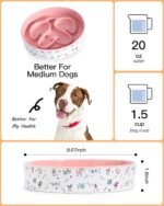 Keramische langzame feeder hondenkom, 1,5 kopjes/20 oz langzaam voedingshondkom voor groot ras, 8 “schattige hondenvoerkom met patroon voor snelle eters, grote hondenkom voor middelgrote grote vlakke gezicht honden (roze)