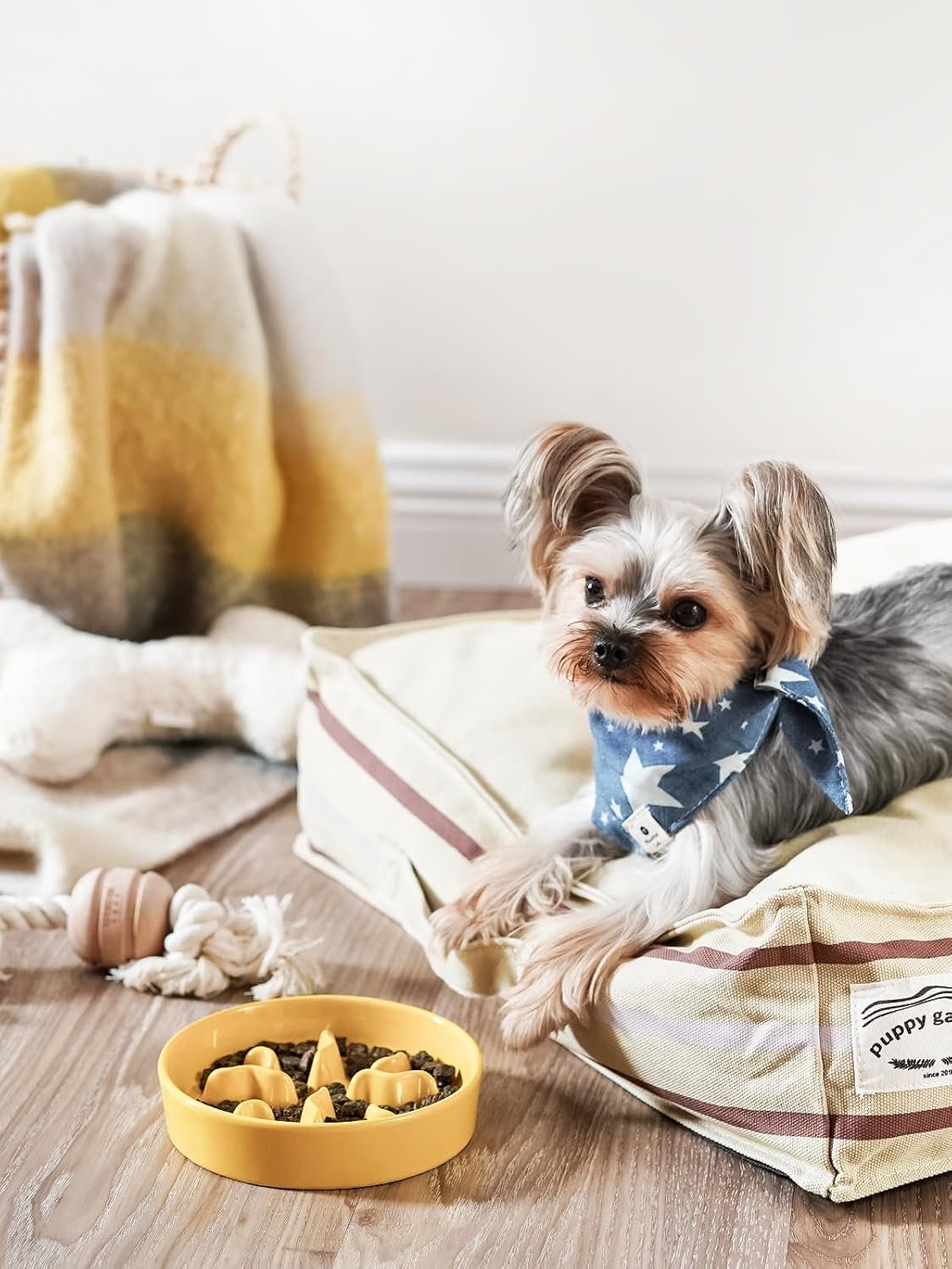 Keramische langzame feeder hondenkommen klein ras, 0,5 kopjes hondenvoergerecht voor snelle eters, puzzelkom voor kleine honden en katten, 5,5 inch-gele
