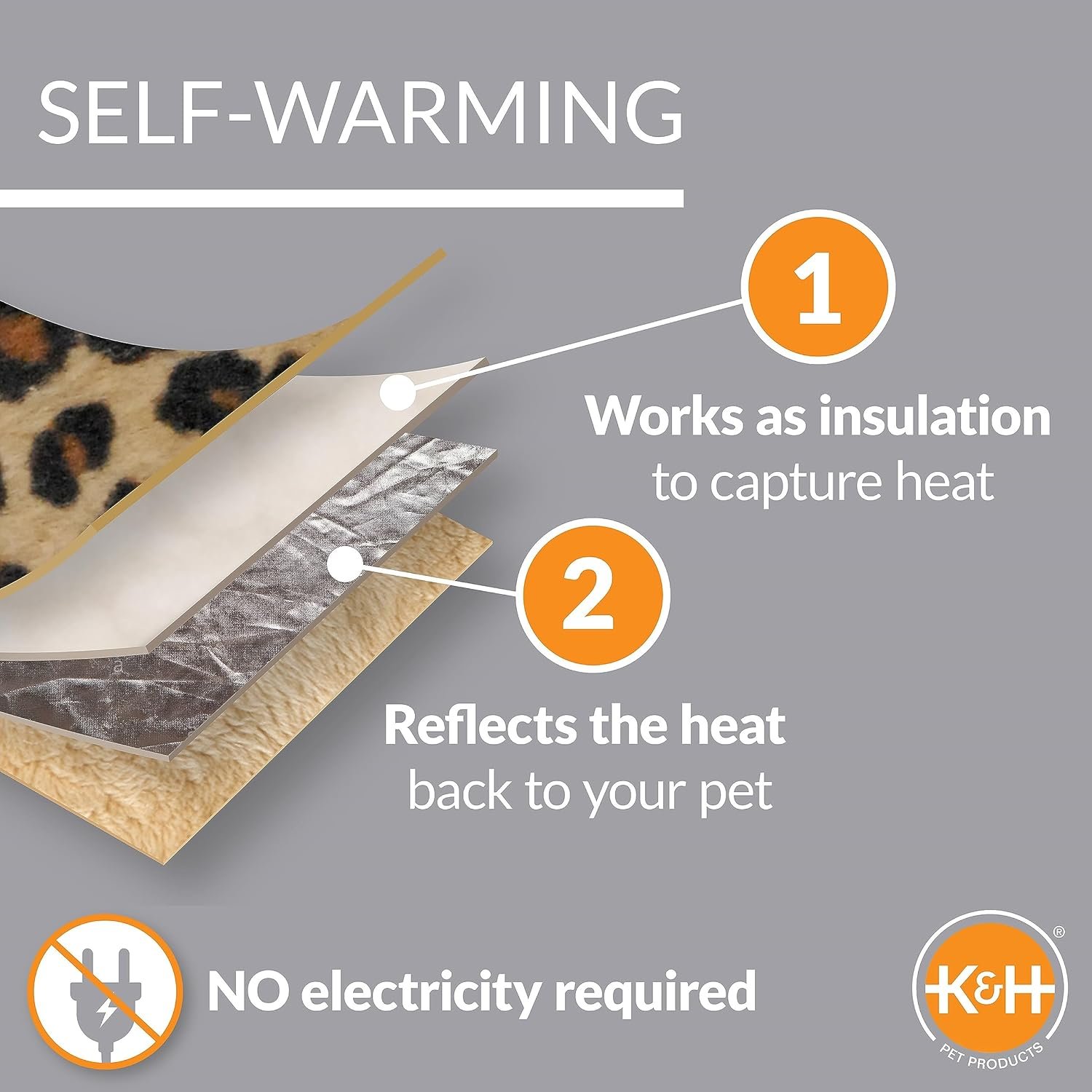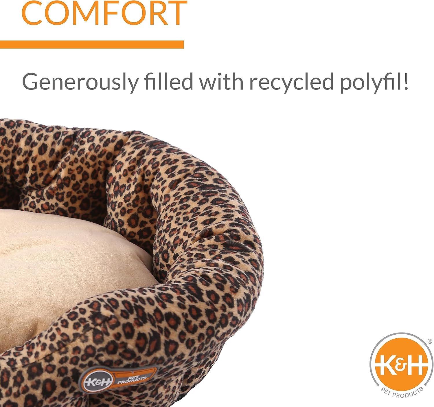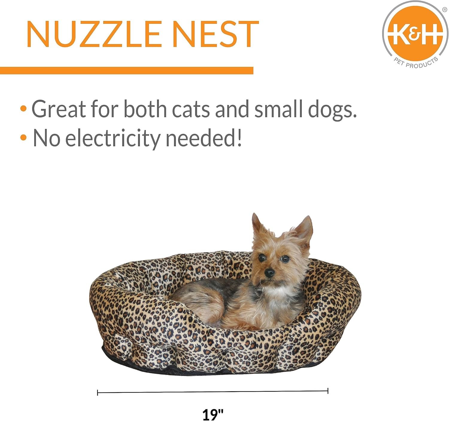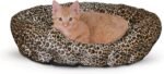 K&H huisdierproducten zelfverwarmende duw nestkattenbed, zacht pluche comfortabel zelfverwarmend huisdierbed, geen elektrisch nodig om huisdieren warm te houden, ook voor kleine honden, machinaal wasbaar – 19in luipaard/tan
