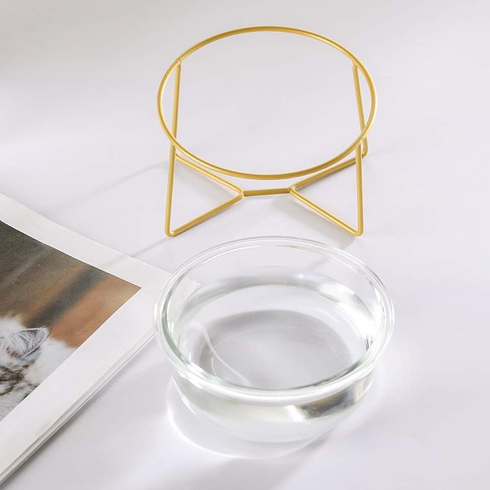 Klein glas gekanteld verhoogde kat hondenkom verhoogde kat voedsel waterkom schotel huisdier comfort voeding kommen met gouden ijzerstandaard