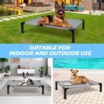 Blijf koel en droog: het hondenbed verheft huisdieren meer dan 9,3 inch van de grond, waardoor lucht eronder kan circuleren en een koelomgeving voor uw huisdieren biedt. Verhoogde hondenwieg is geweldig om je huisdier in de koelere maanden warm te houden en koeler in de warmere maanden zowel binnen als buiten.