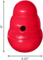 De Kong-vormige wobbler is een actievolle traktatie- en voedselvergist speelgoed. Het gaat rechtop staan ​​totdat het wordt geduwd door de poot of neus van een hond en vervolgens periodiek smakelijke beloningen afgeeft terwijl het wiebelt, draait en rolt.