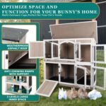 Bunny Cage met twee verdiepingen: 2 niveaus Kooi bieden voldoende ruimte voor huisdieren om vrij te bewegen. Met de grote run op grondniveau kan uw konijn genieten van de zon, terwijl de bovenkamer een gezellige en veilige rustruimte biedt. Exclusieve acrylvensters zorgen voor ononderbroken monitoring en behouden de veiligheid van uw konijn.