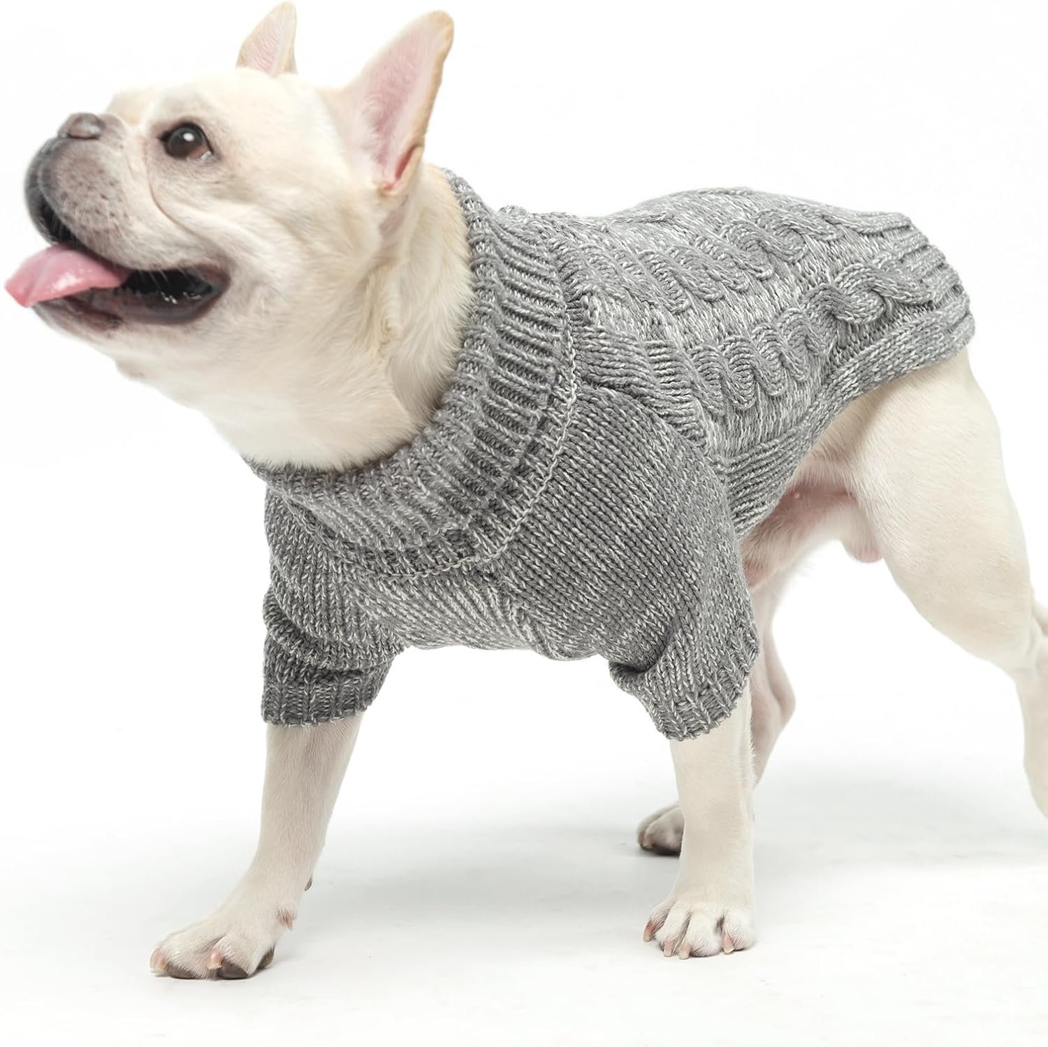 Kooltail thermische gebreide hondentrui voor kleine middelgrote grote honden, coltrui kabel gebreide doggy winter jas warme kleding sweatshirt outfits voor koud weer, pullover huisdier jumper voor puppy katten grijs sm